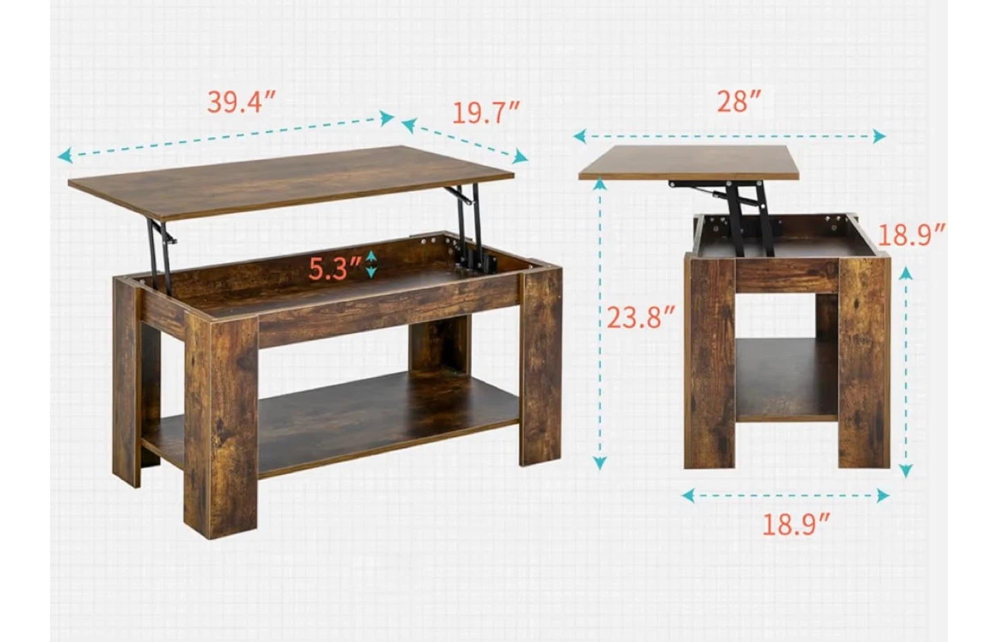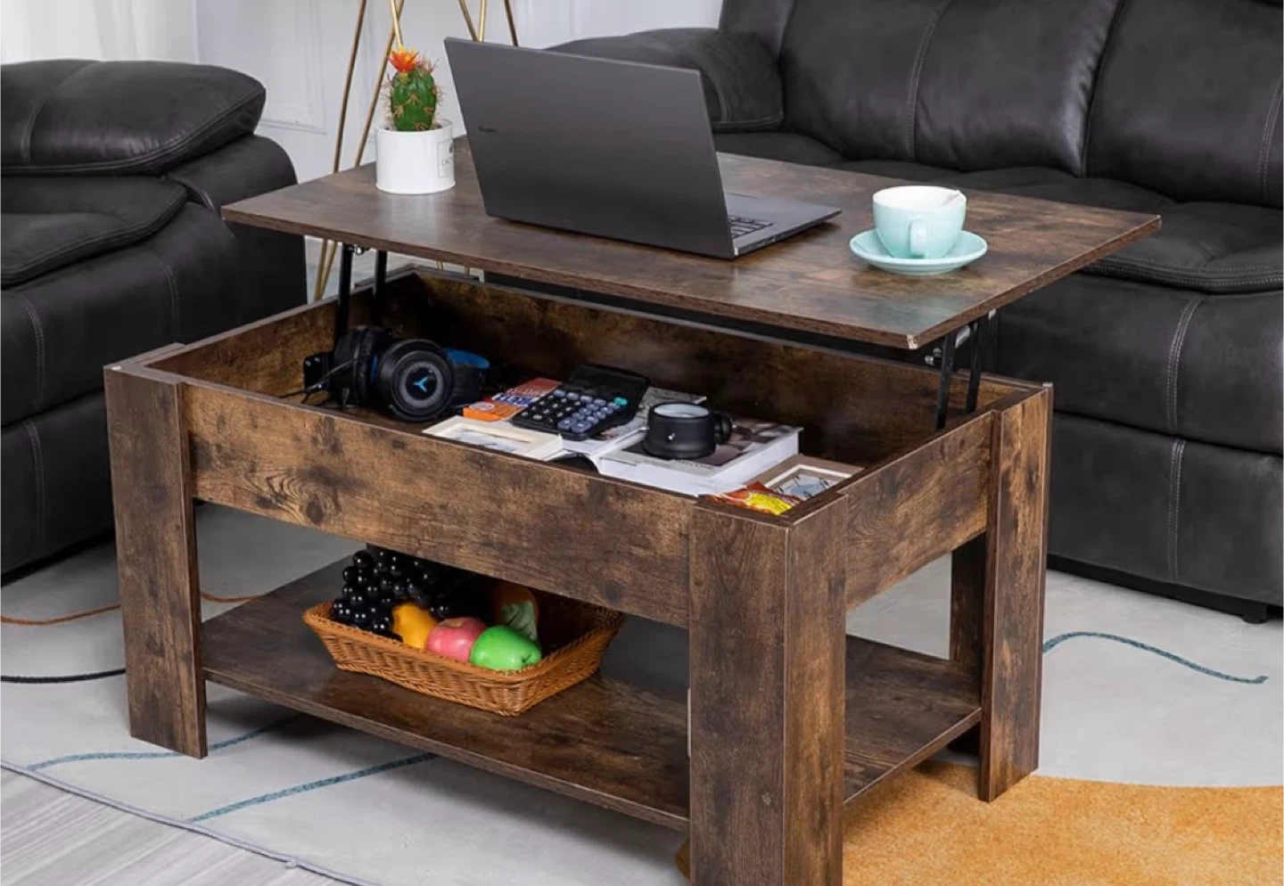 Lift Top Coffee Table - Rustic Brown