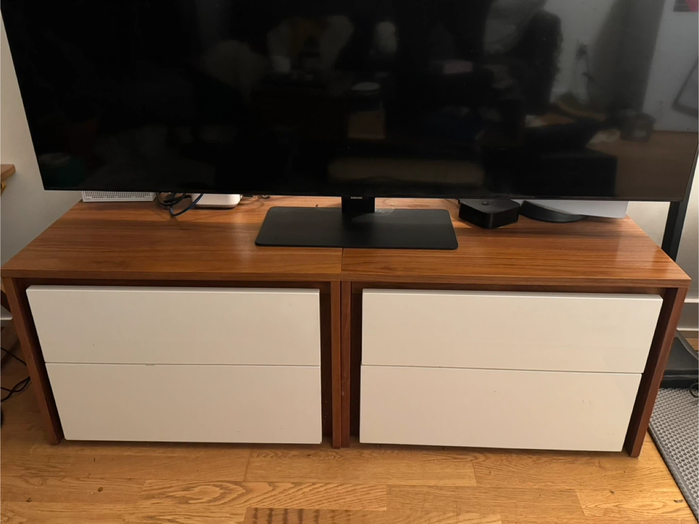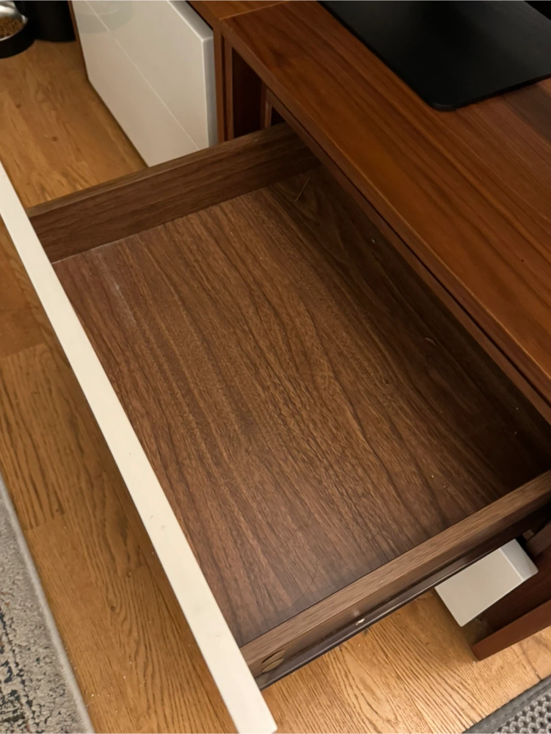 Each unit has two spacious drawers and slides smoothly. I’ve cut small wire holes in the back panels to run cords through (great if you want to store electronics inside). If using for electronics, I’d recommend leaving a drawer slightly open for airflow.