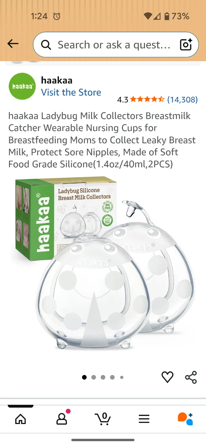 1,Haakaa Ladybug Silicone Breast Milk Collectors. Made of 100% food-grade silicone. BPA, PVC, and phthalate-free. Collects leaky breast milk and protects sore nipples. Pack of two, 1.4oz (40ml) capacity each.
