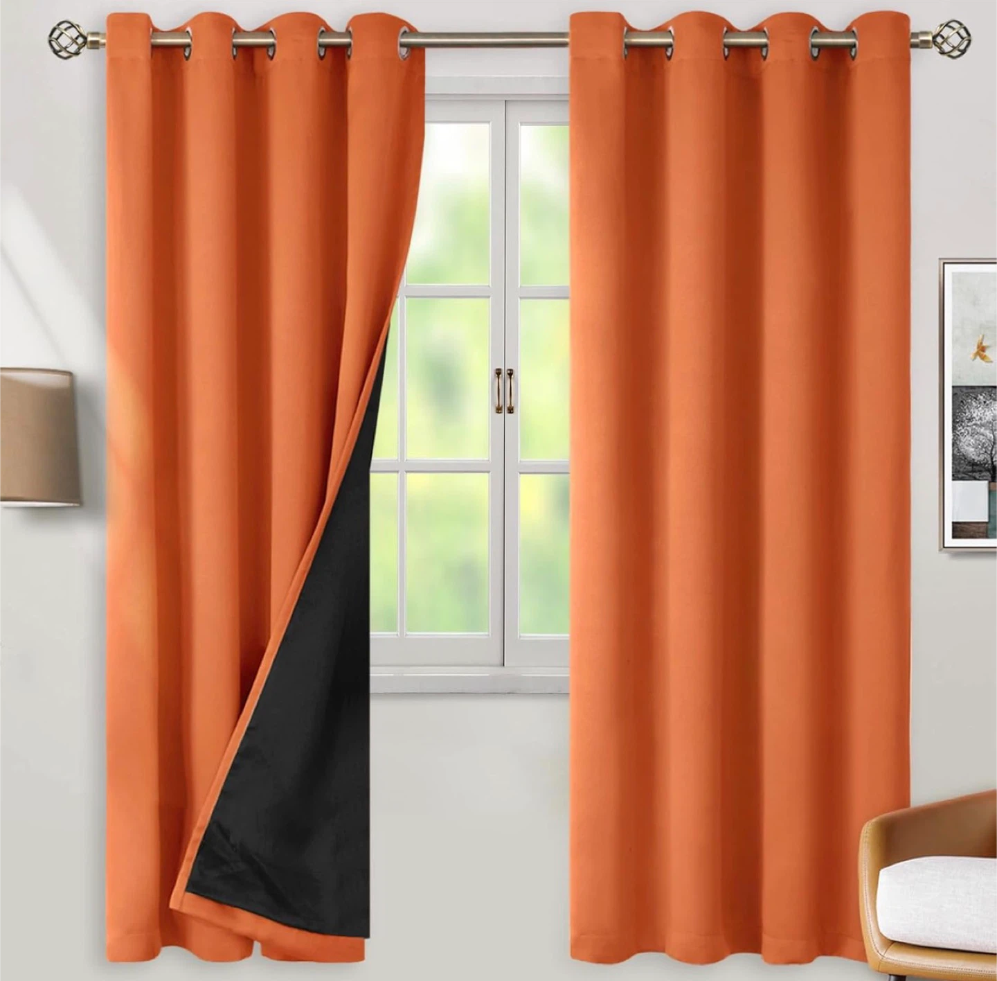 Burnt Orange Grommet Curtains (Set of 2)