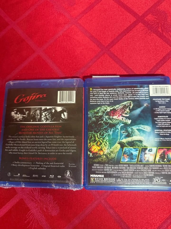 Awesome set of Godzilla Blu-ray movies. Gojira, the original Japanese masterpiece is brand new and still sealed. The other is Godzilla vs Biollante but cellophane is removed. Great for any fan! Pick up Thickson & Columbus, Brooklin.