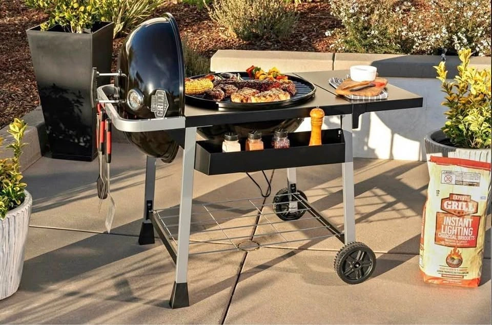 Expert Grill CHARCOAL Kettle BBQ Cart w/ Pizza Rack + Pizza Stone + Warming Rack
