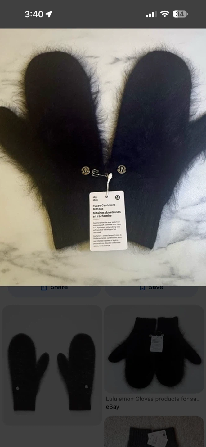 Lululemon Fuzzy Cashmere Mittens Black S/S