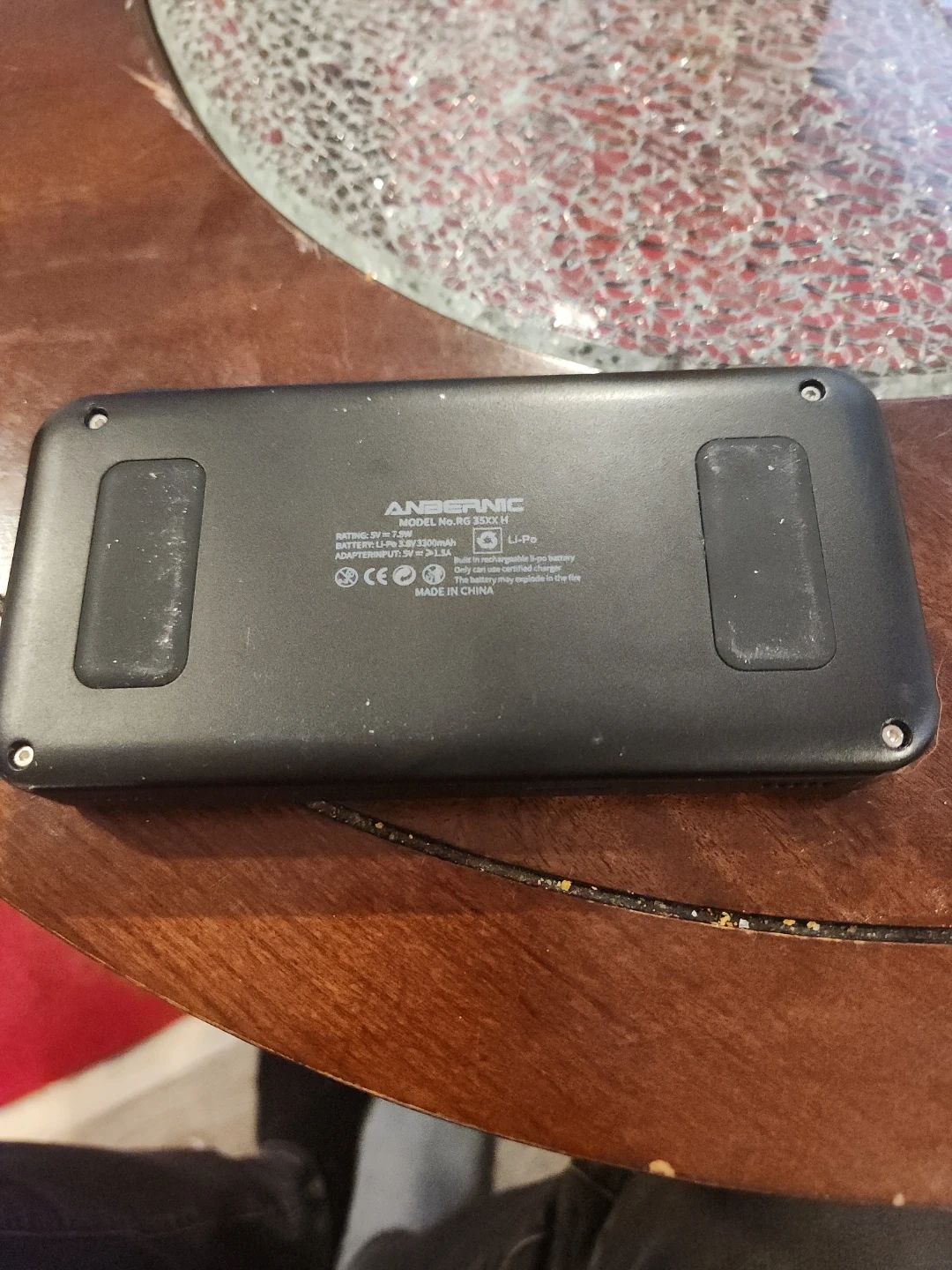 This is an Anbernic RG35XX H handheld gaming console. It features a Li-Po battery. This device is great for on-the-go entertainment!