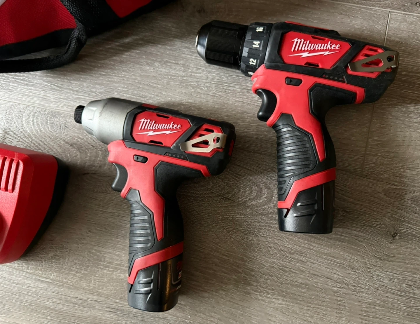 In addition to the two M12™ power tools, the combo kit includes two cordless M12™ REDLITHIUM™ batteries, an M12™ 30-minute charger, and a contractor bag.