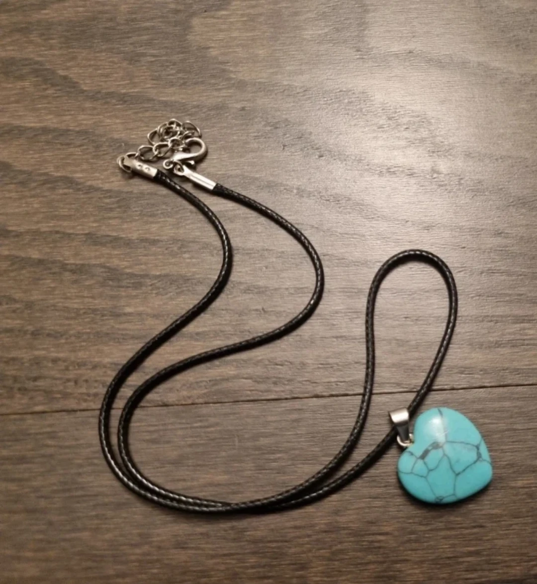 Selling a turquoise heart necklace. Never worn/ used and come in the sealed packaging shown.