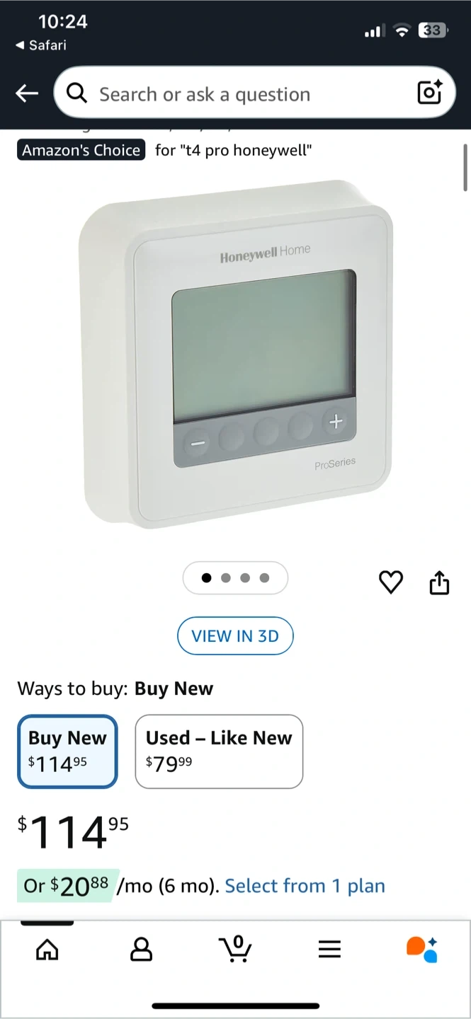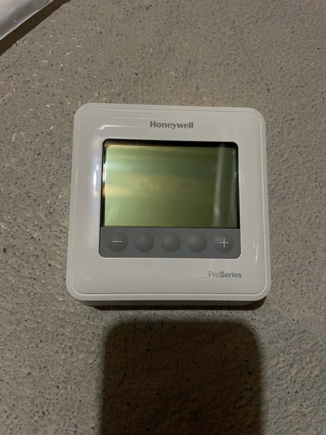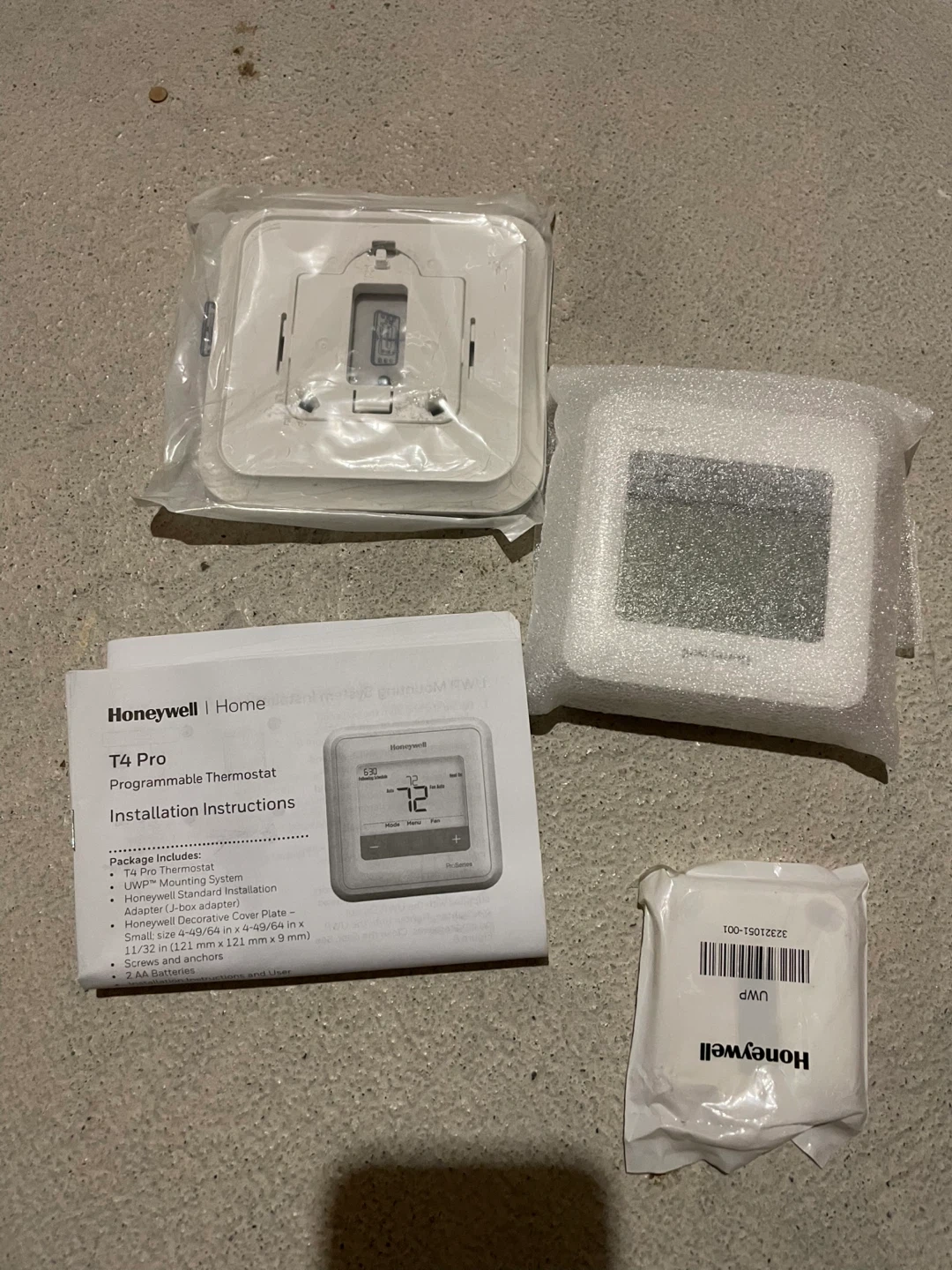 This is a Honeywell Home T4 Pro programmable thermostat. It's designed for 1 Heat / 1 Cool Heat Pump or 1 Heat / 1 Cool Conventional systems. Battery or hardwired installation is possible.