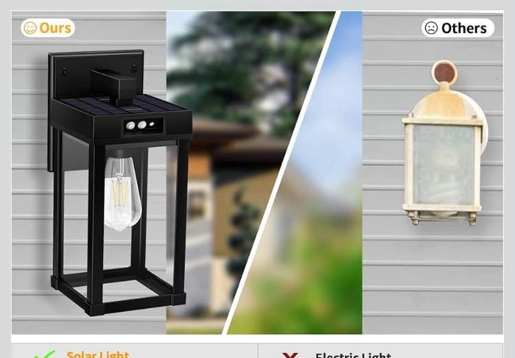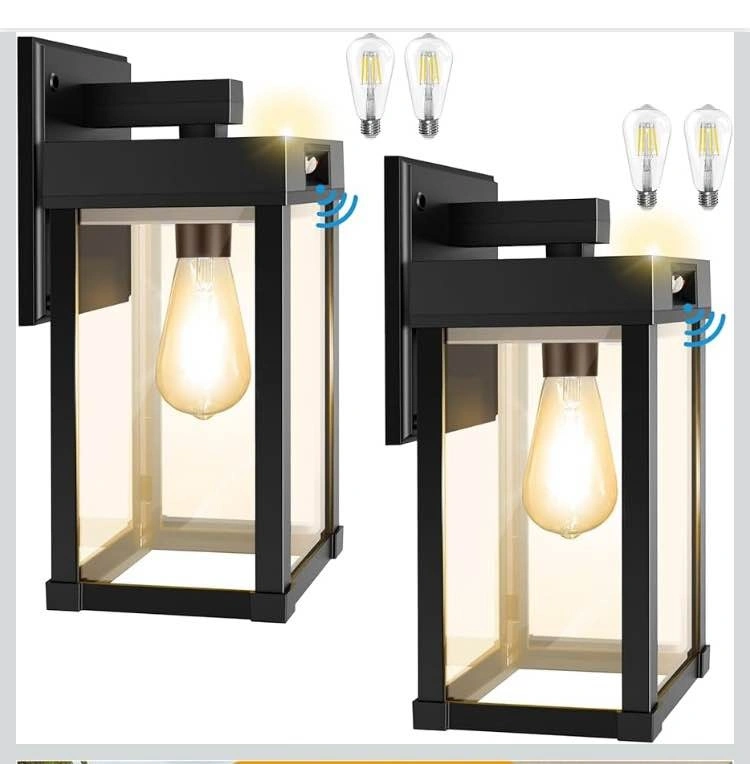 Solar wall lights outdoor with 3 lighting modes and motion sensor. Comes with 2 bulbs. Waterproof solar sconce, lantern light fixture for garage, porch, shed, yard, or front door.