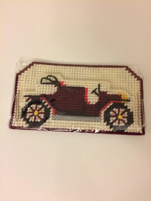 Never lose your keys again with this decorative key and memo holder. This key holder is lovingly hand-stitched with yarn on plastic canvas and features a retro red antique car on an ivory background. Magnets hold the key organizer on a fridge or filing cabinet, or use nails or screws (not included) to affix the holder to your wall. Two metal hooks will hold light keyrings and a pocket behind the car will hold notepaper, keeping it handy for messages and reminders. Add some whimsical flair to your home or office decor. Makes a great gift for the classic car enthusiast in your life. $10. Near the Burlington/Oakville border.