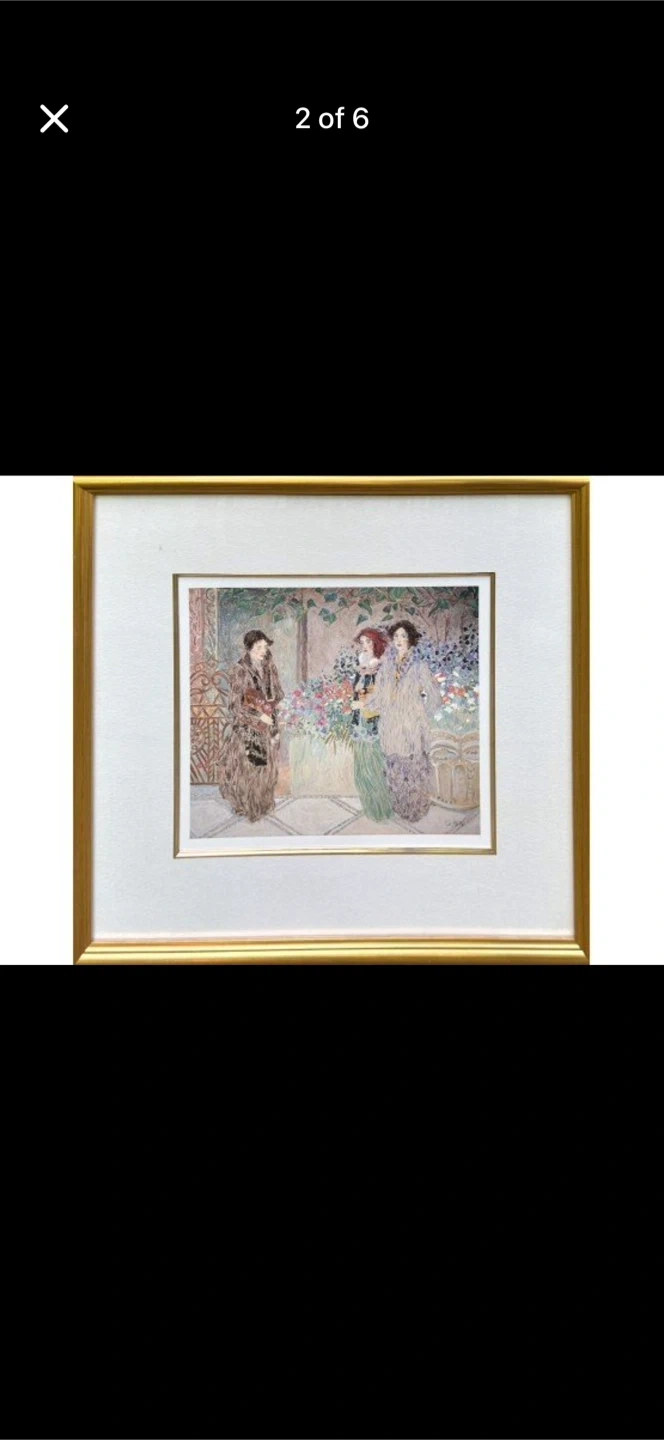 2x Lithographic Prints ("Interlude" and "The Friends") by American artist Ellen Gunn in custom gold frames.