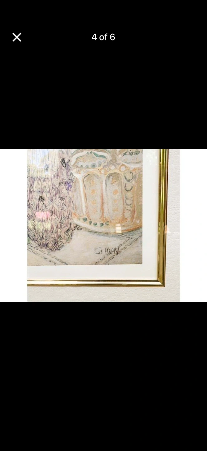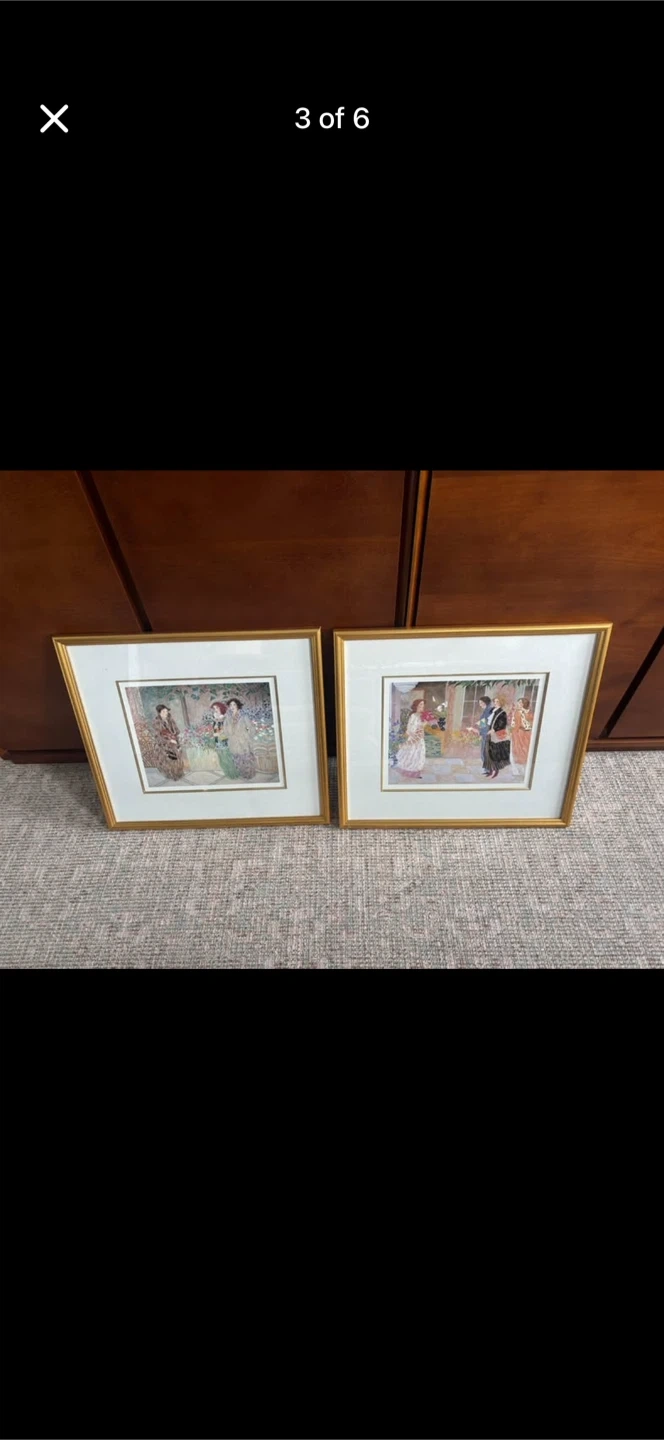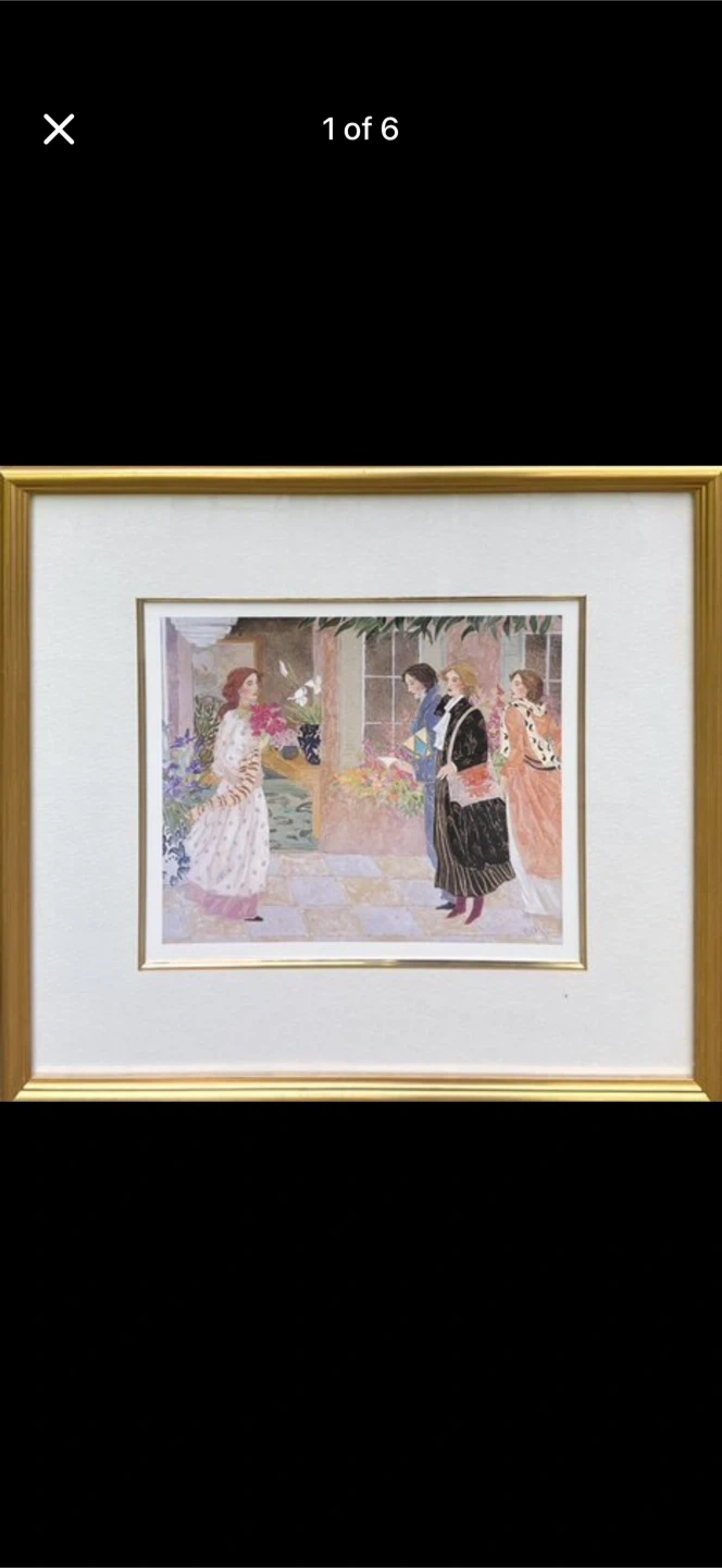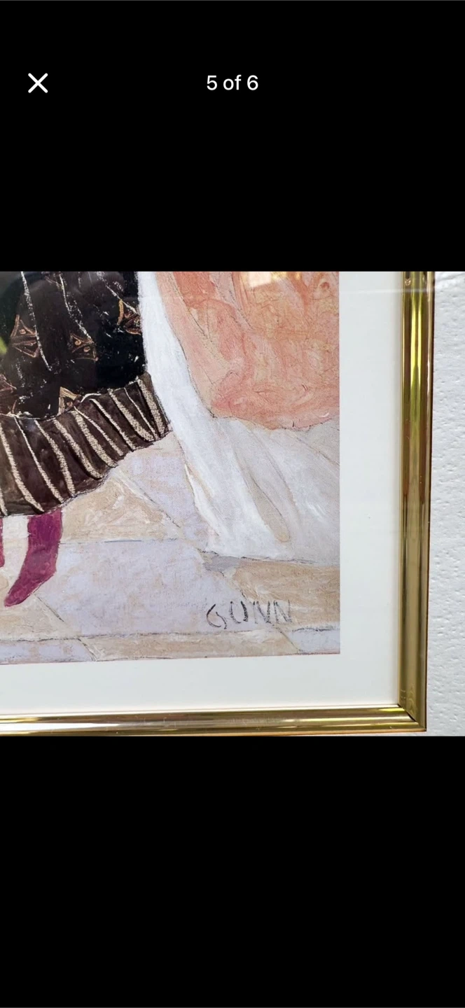 2x Lithographic Prints ("Interlude" and "The Friends") by American artist Ellen Gunn in custom gold frames.