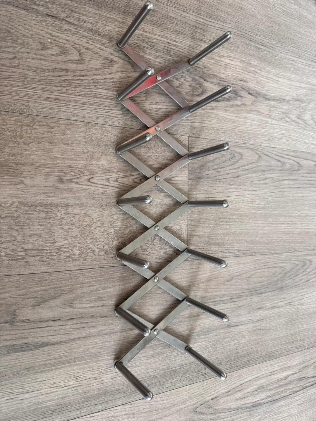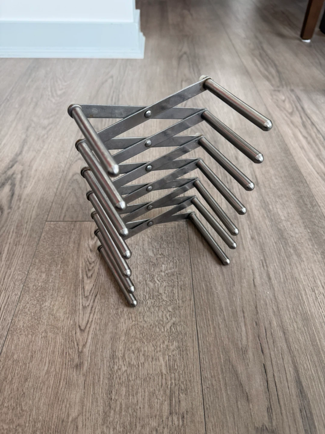 This is an IKEA expandable accordion-style dish drying rack. It's made of metal and can be compressed for easy storage and extended for multiple dishes. Great for drying dishes in small space.