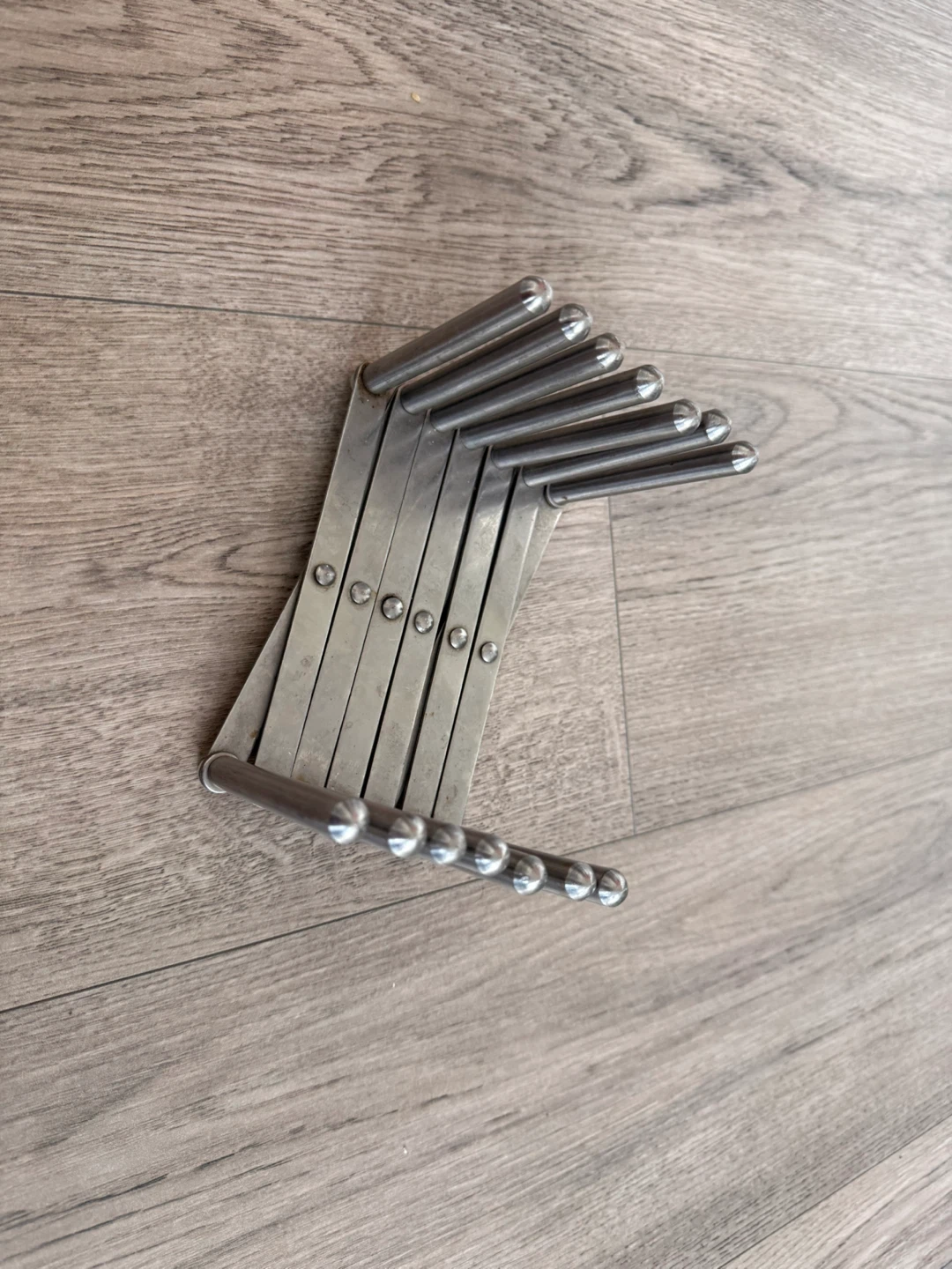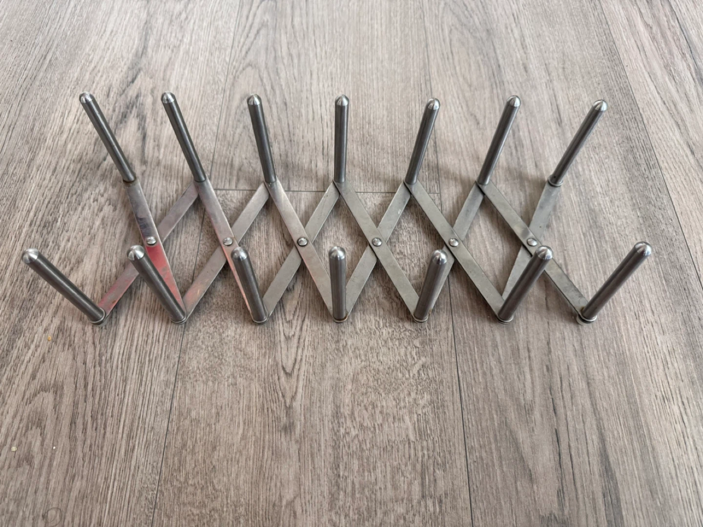 This is an IKEA expandable accordion-style dish drying rack. It's made of metal and can be compressed for easy storage and extended for multiple dishes. Great for drying dishes in small space.