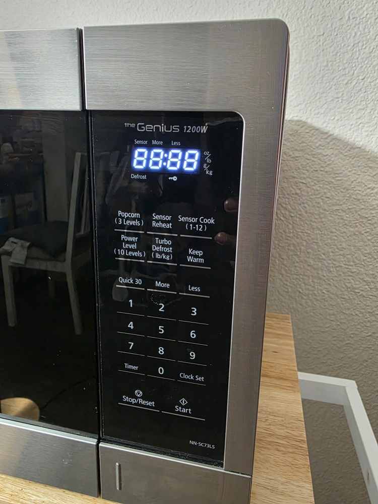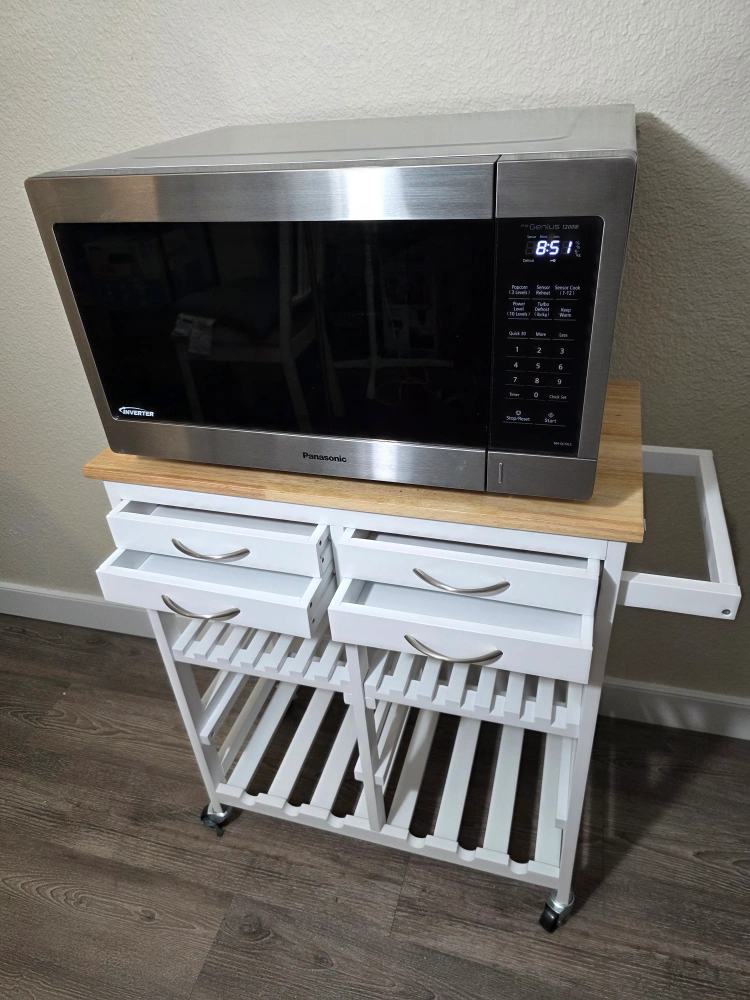 Selling a Panasonic The Genius 1200W microwave. It has sensor cook and reheat options and a quick 30-second button. Great for any kitchen!