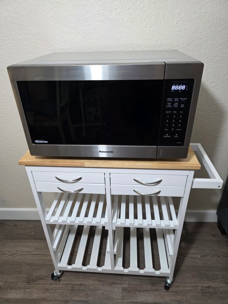 Selling a Panasonic The Genius 1200W microwave. It has sensor cook and reheat options and a quick 30-second button. Great for any kitchen!