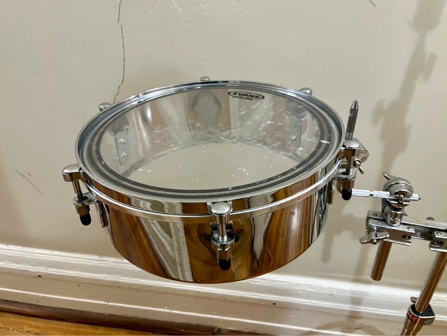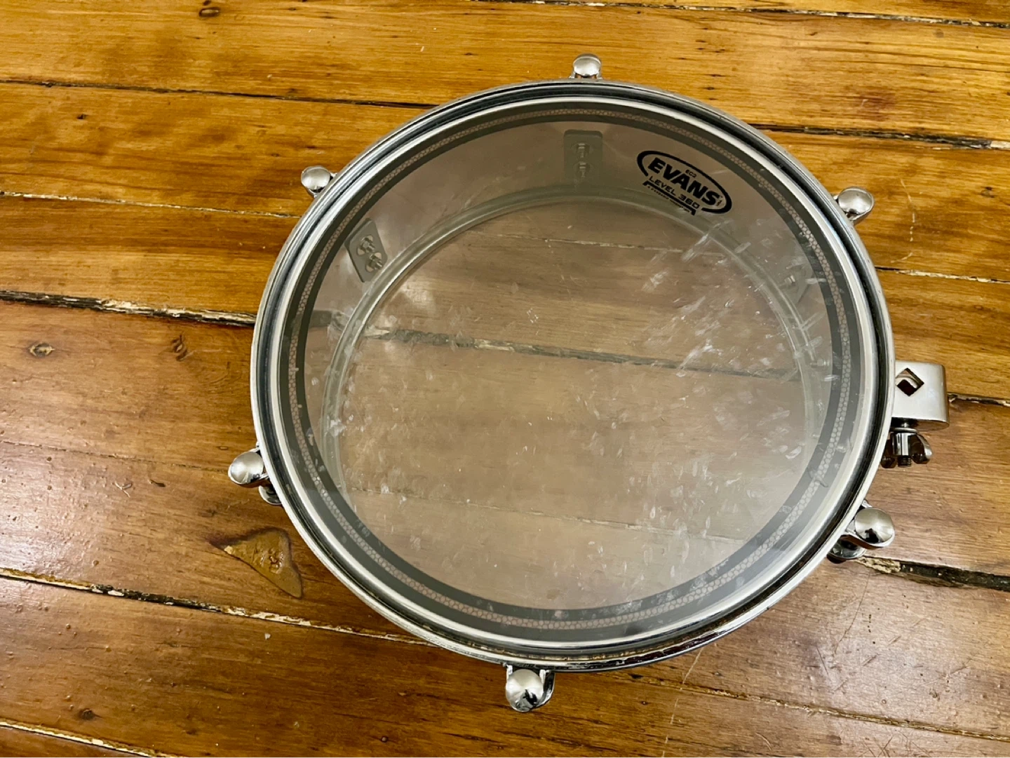Meinl MDT13CH 13" Drummer Timbale. Great sounding Timbale with a solid mount making it easy to add to any drum set or percussion set up. Evans EC2 head in good shape. Structurally the drum is in perfect condition and working as it should, cosmetically it has pitting in the chrome, it's not rust and isn't all that noticeable unless looking close, it certainly doesn't affect the performance of the drum. The cymbal stand and l-arm mount in the last photo are not included but are both available separately if you need them.