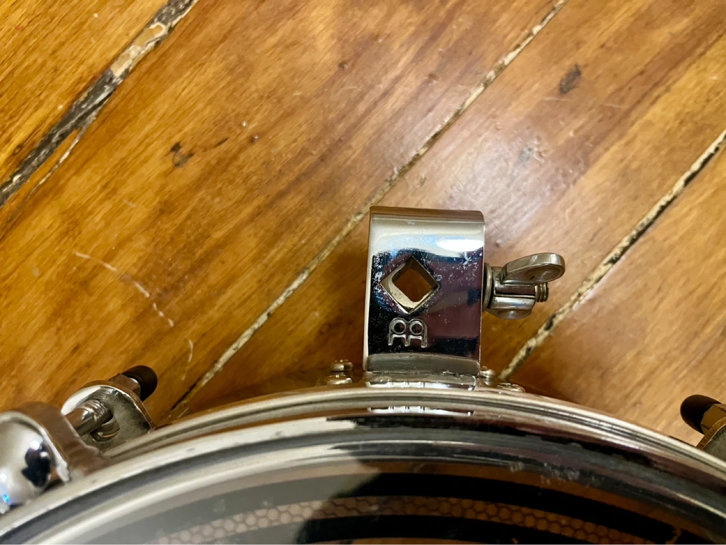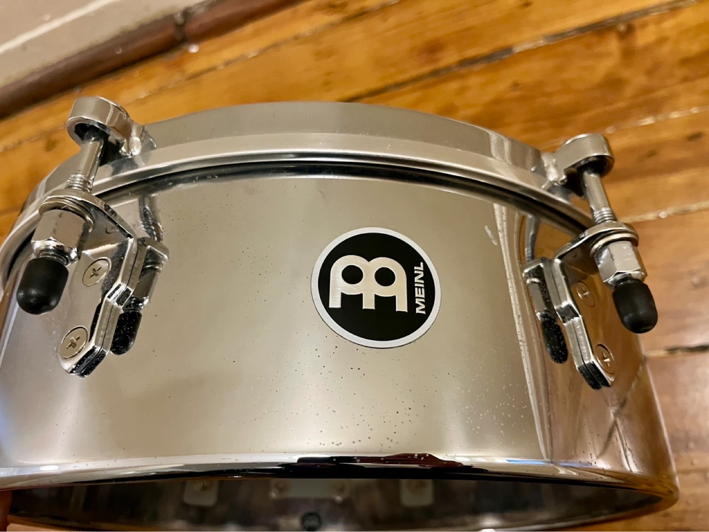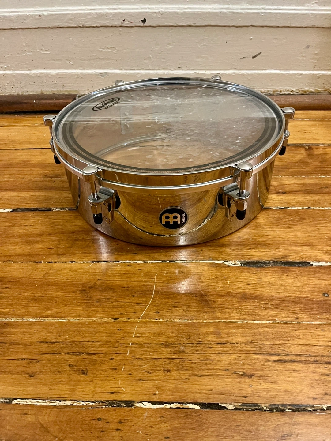 Meinl MDT13CH 13" Drummer Timbale. Great sounding Timbale with a solid mount making it easy to add to any drum set or percussion set up. Evans EC2 head in good shape. Structurally the drum is in perfect condition and working as it should, cosmetically it has pitting in the chrome, it's not rust and isn't all that noticeable unless looking close, it certainly doesn't affect the performance of the drum. The cymbal stand and l-arm mount in the last photo are not included but are both available separately if you need them.