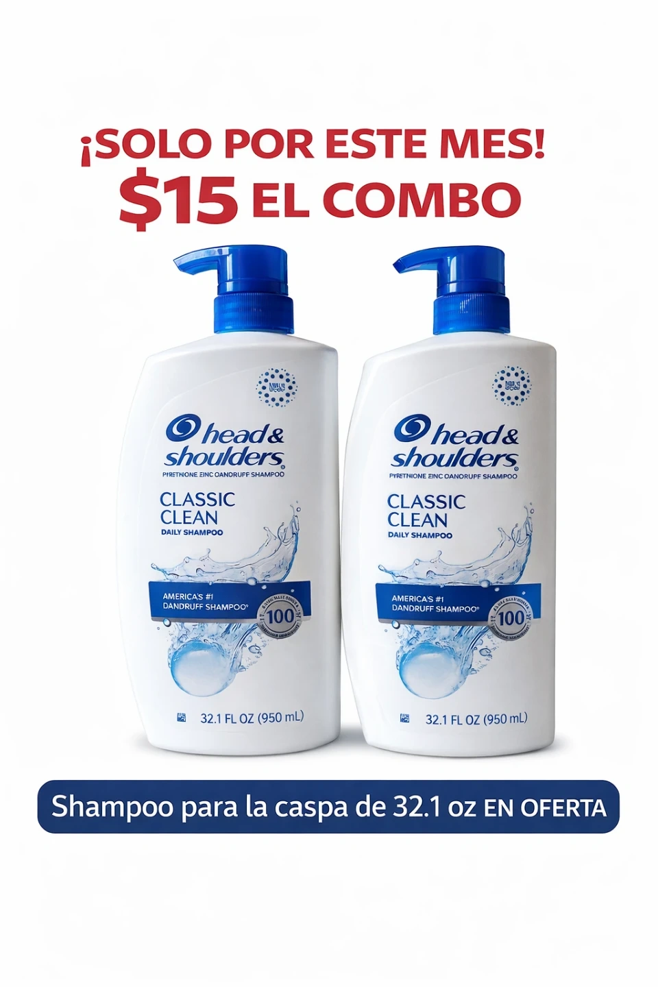 This listing includes two bottles of Head & Shoulders Classic Clean Daily Shampoo. Each bottle contains 32.1 FL OZ (950 mL) of shampoo. It's America's #1 dandruff shampoo.