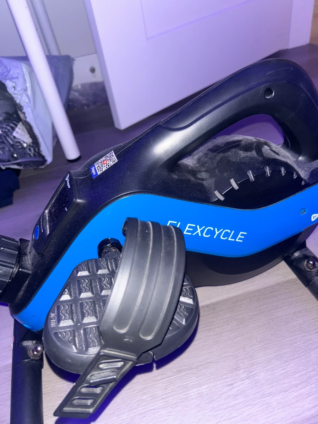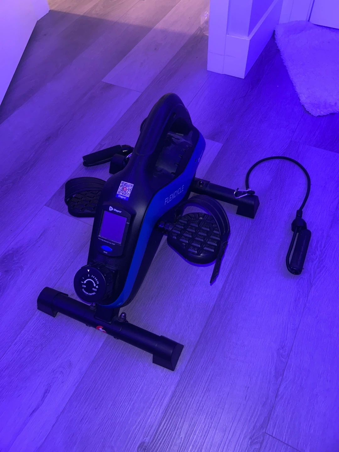 This Lifepro FlexiCycle is a compact under-desk exercise bike. It offers adjustable tension control up to level 8. The display shows scan, time, RPM, distance, and calories burned. Amazon listing: https://tinyurl.com/yc4tpvj4. Retail is $201 cad. I’m selling it for cheap because the display doesn’t work. But you can still adjust the settings and bike.