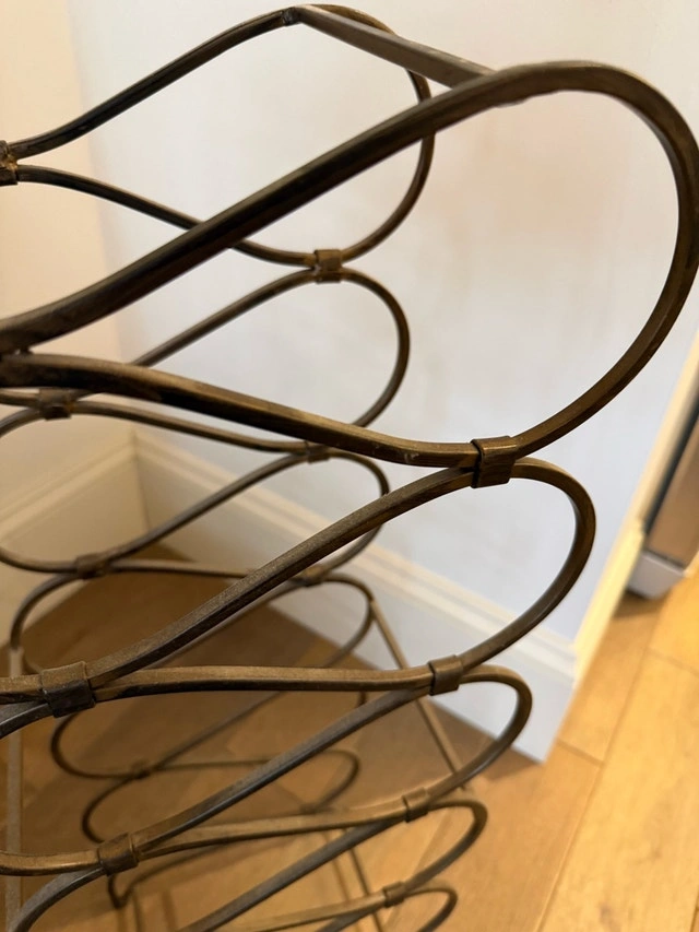 Add a touch of elegance to your home with this used metal wine rack, perfect for storing your favourite bottles. This rack is in good condition, ready to showcase your wine collection with a stylish twist. It holds 12 bottles. Cash only. Pick up in Mahogany SE or Quarry Park SE.
