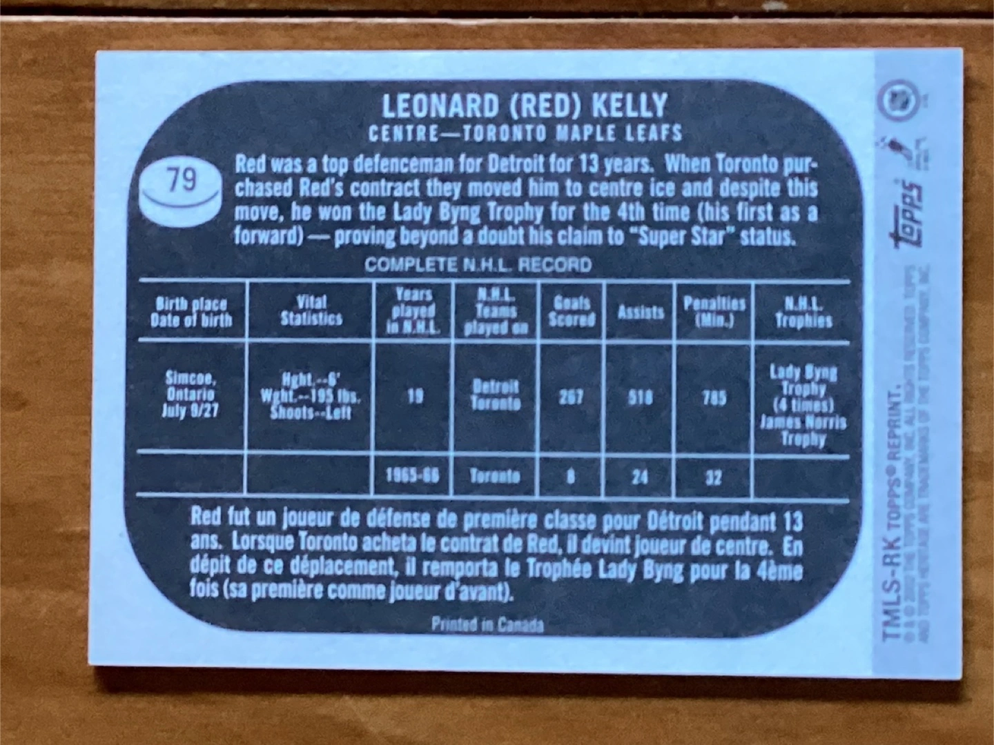 2001-02 Autographed TOPPS HERITAGE NHL RED KELLY Card # 79 !
