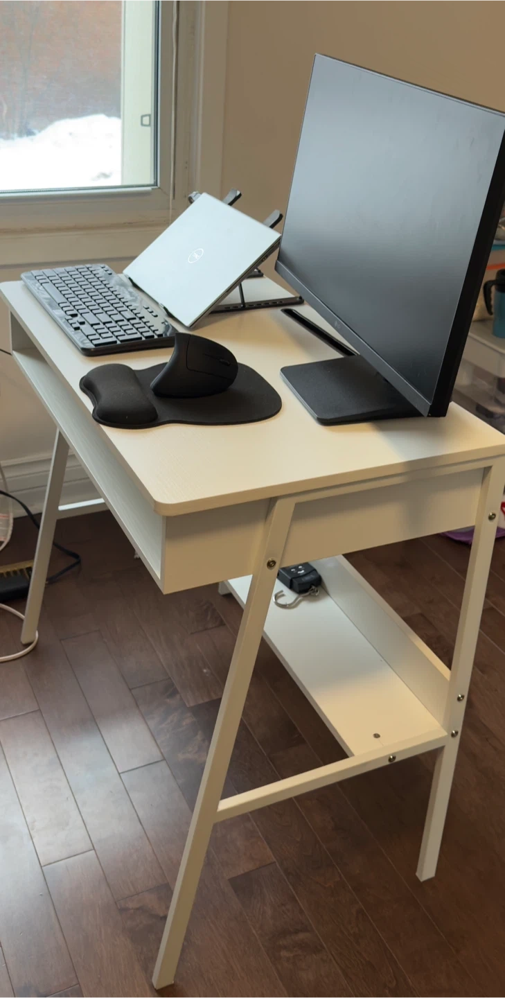 Selling a modern white work desk in very good condition. Perfect for home office, students, or small spaces.