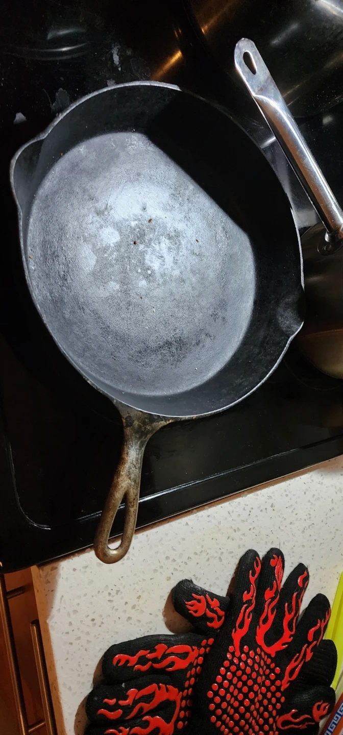 Pre-seasoned Wapak cast iron skillet. Heavy-duty construction for even heating. This pan's great for searing meats or frying up breakfast! It's ready for your kitchen.