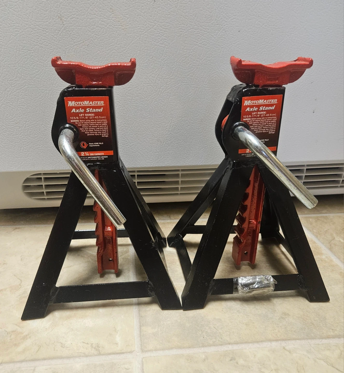 I’ve got a pair of MotoMaster 2.25-ton axle stands up for grabs. They’ve been sitting in storage and haven't seen much use, so they're still in excellent shape