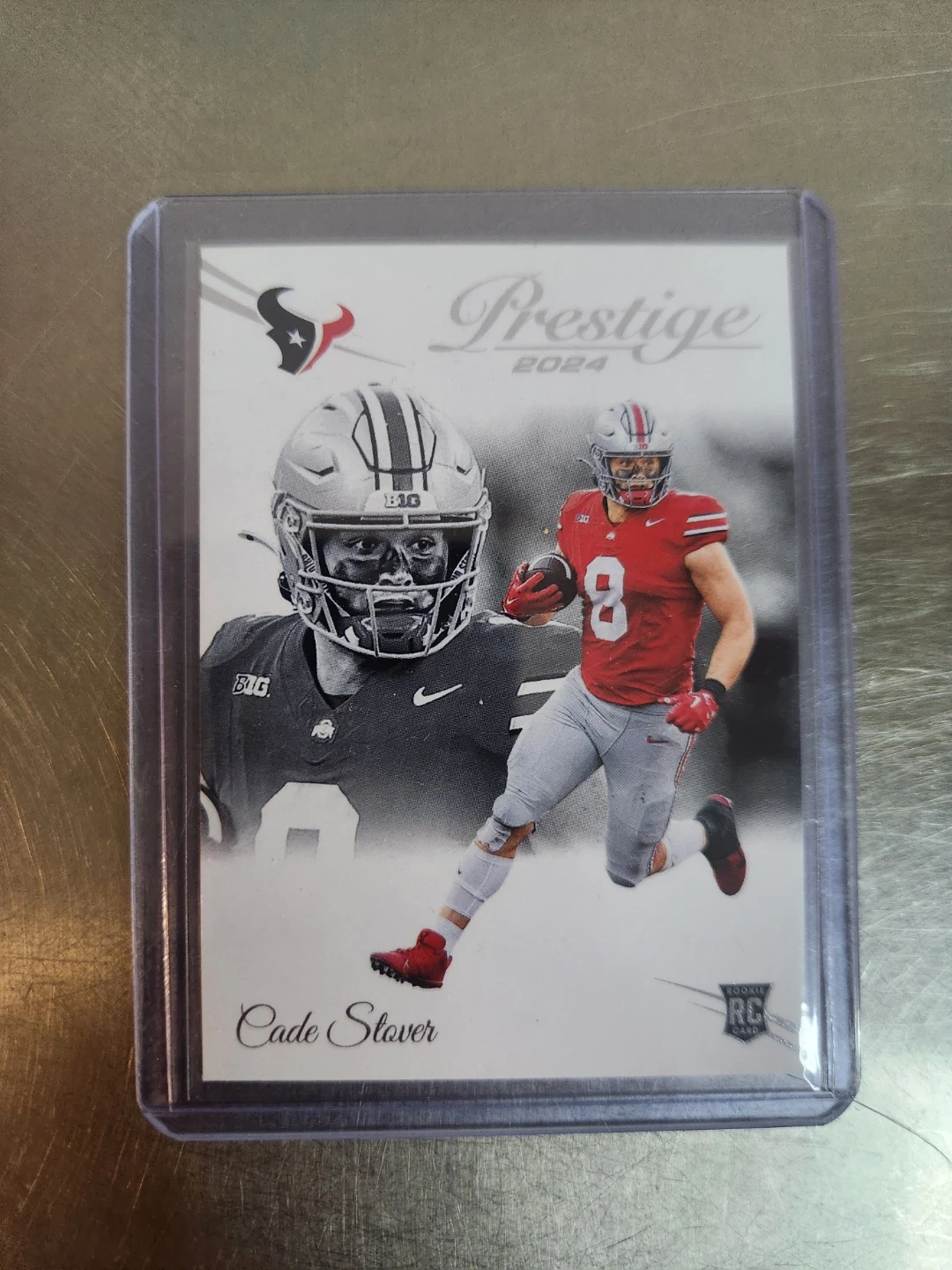 Selling a set of Cade Stover rookie football cards. Includes cards from Prestige 2024, Score 2024, Donruss Rated Rookie, and Absolute Rookie.