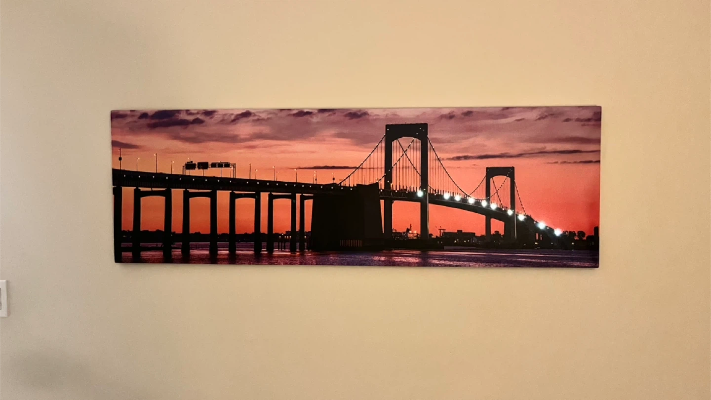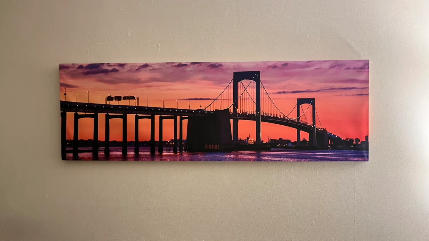 Large panoramic bridge wall art with built-in LED lights.