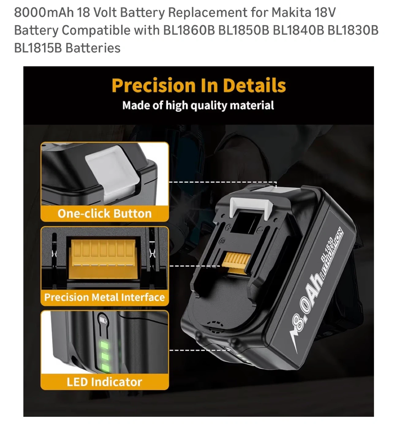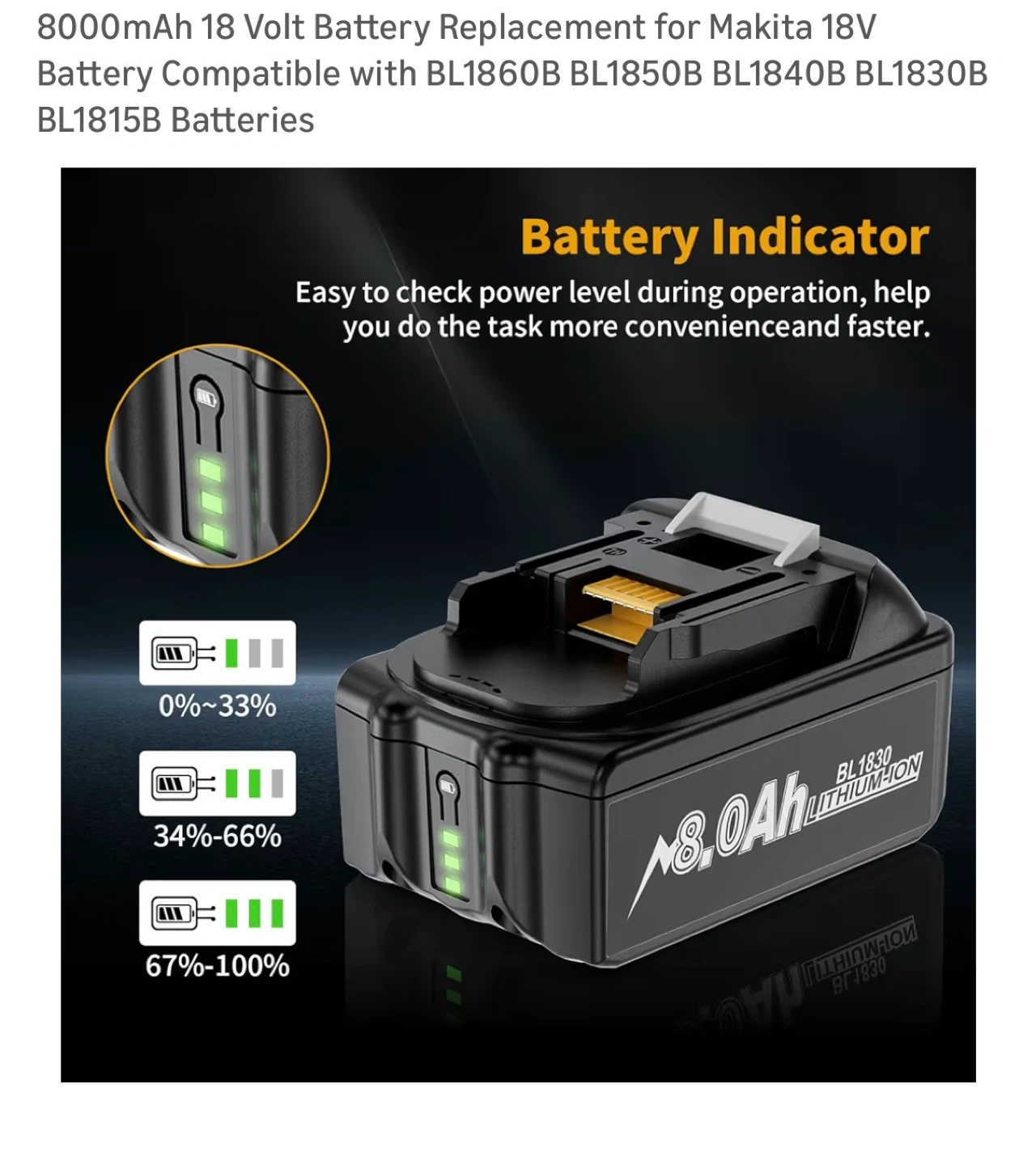 8000mAh 18 Volt Battery Replacement for Makita 18V Battery Compatible with BL1860B BL1850B BL1840B BL1830B BL1815B Batteries