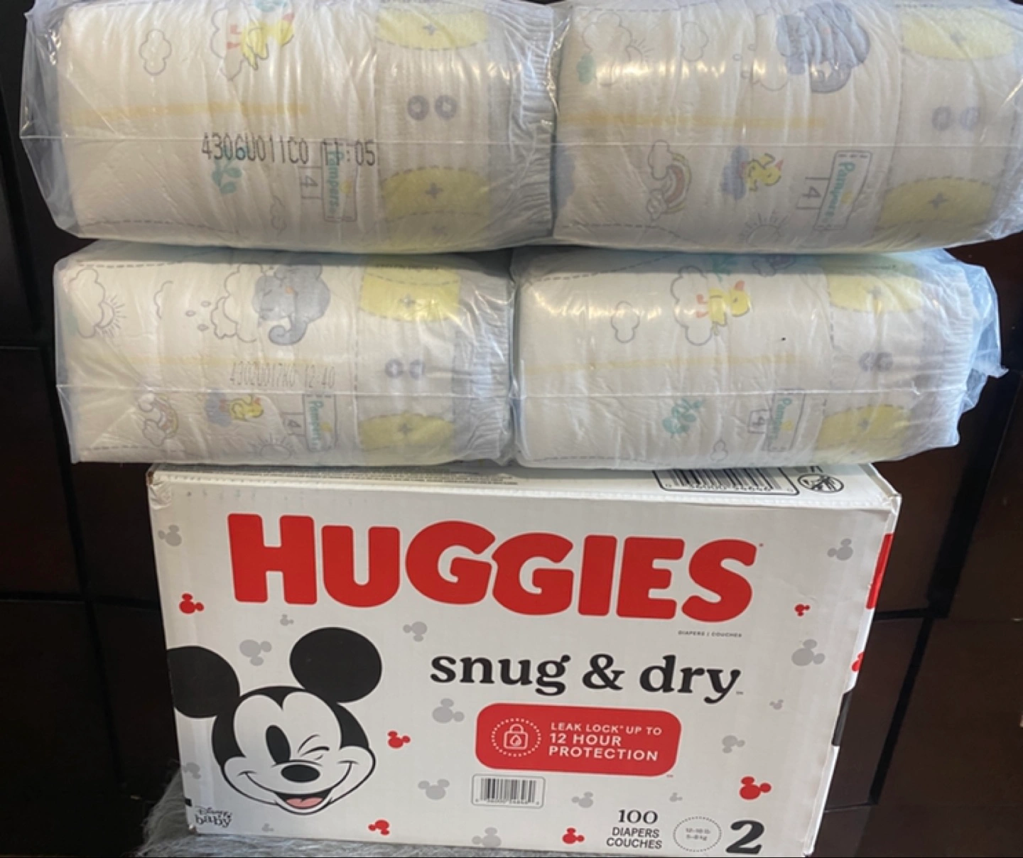 One box of Huggies Snug & Dry size 3-5kg Mickey Mouse edition. $10