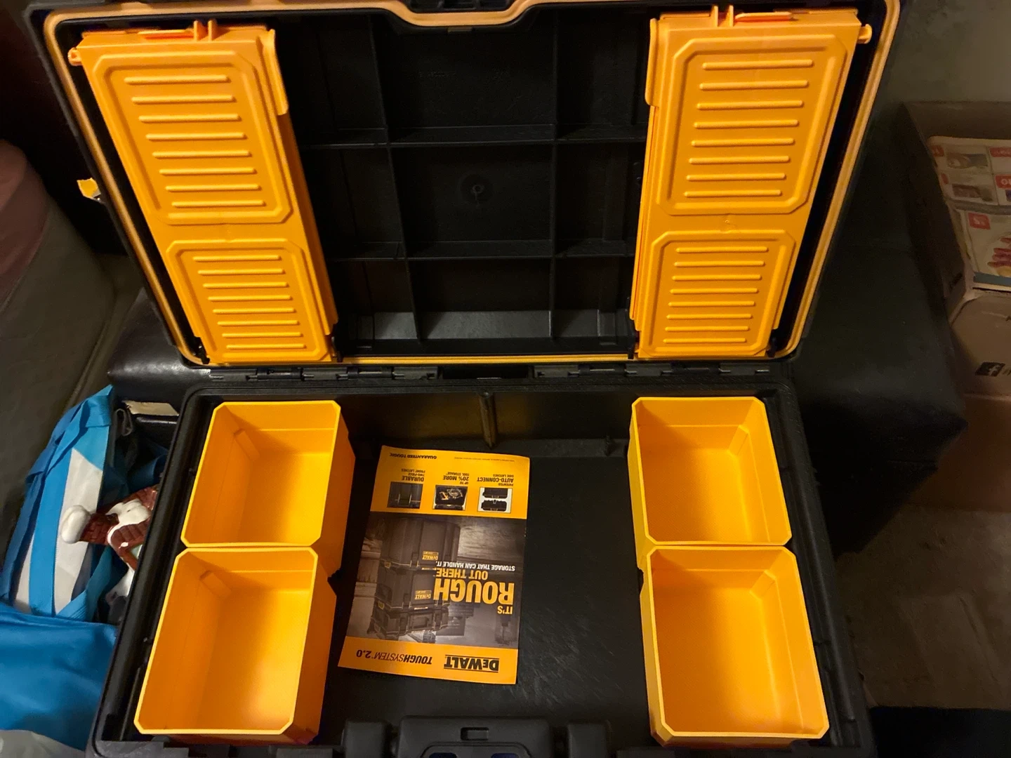 Selling a DeWalt ToughSystem 2.0 tool box. It's in great shape and ready to help you organize your tools! Comes with the inner trays as shown in the pictures. Perfect for any job site or DIY project