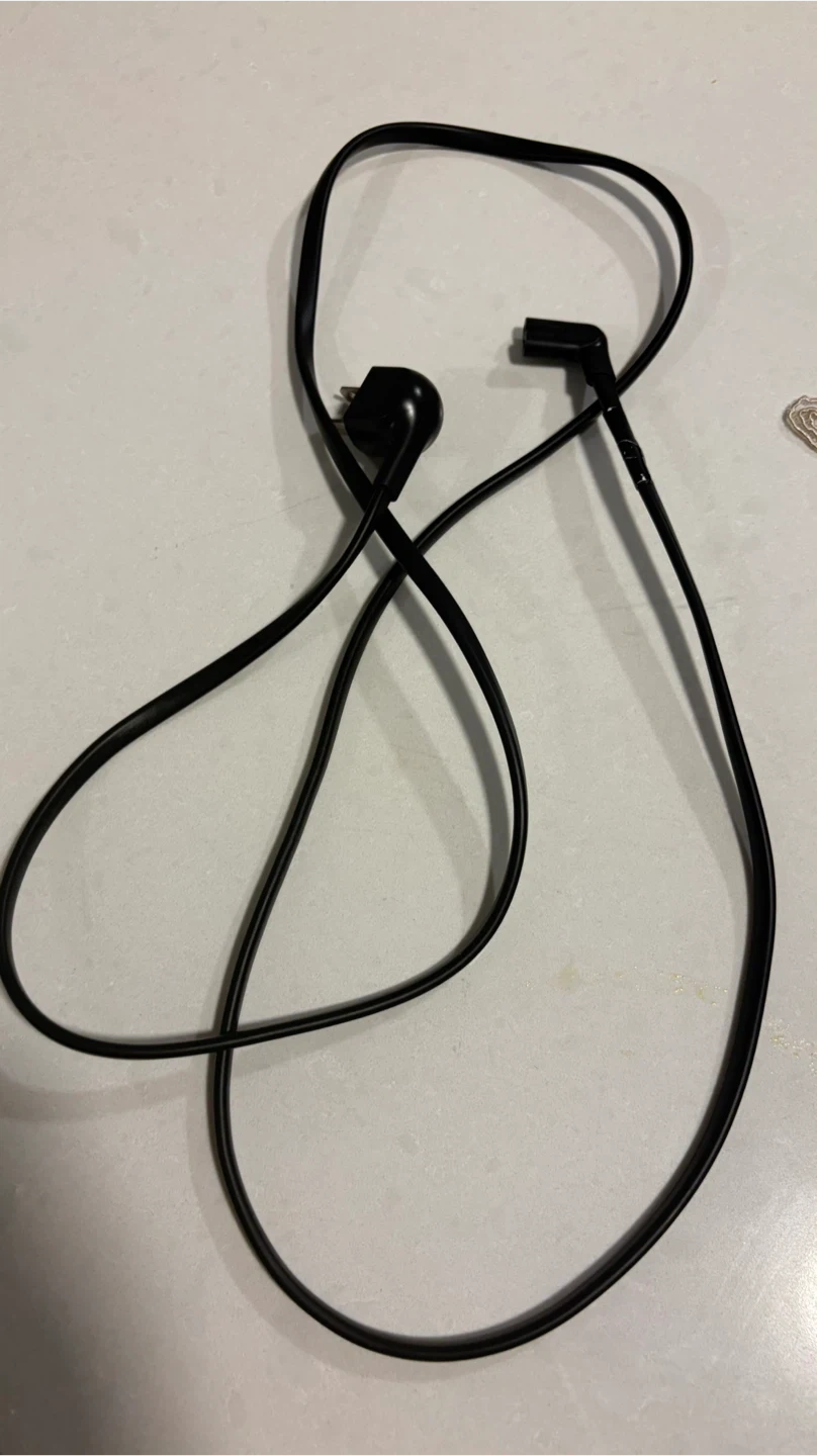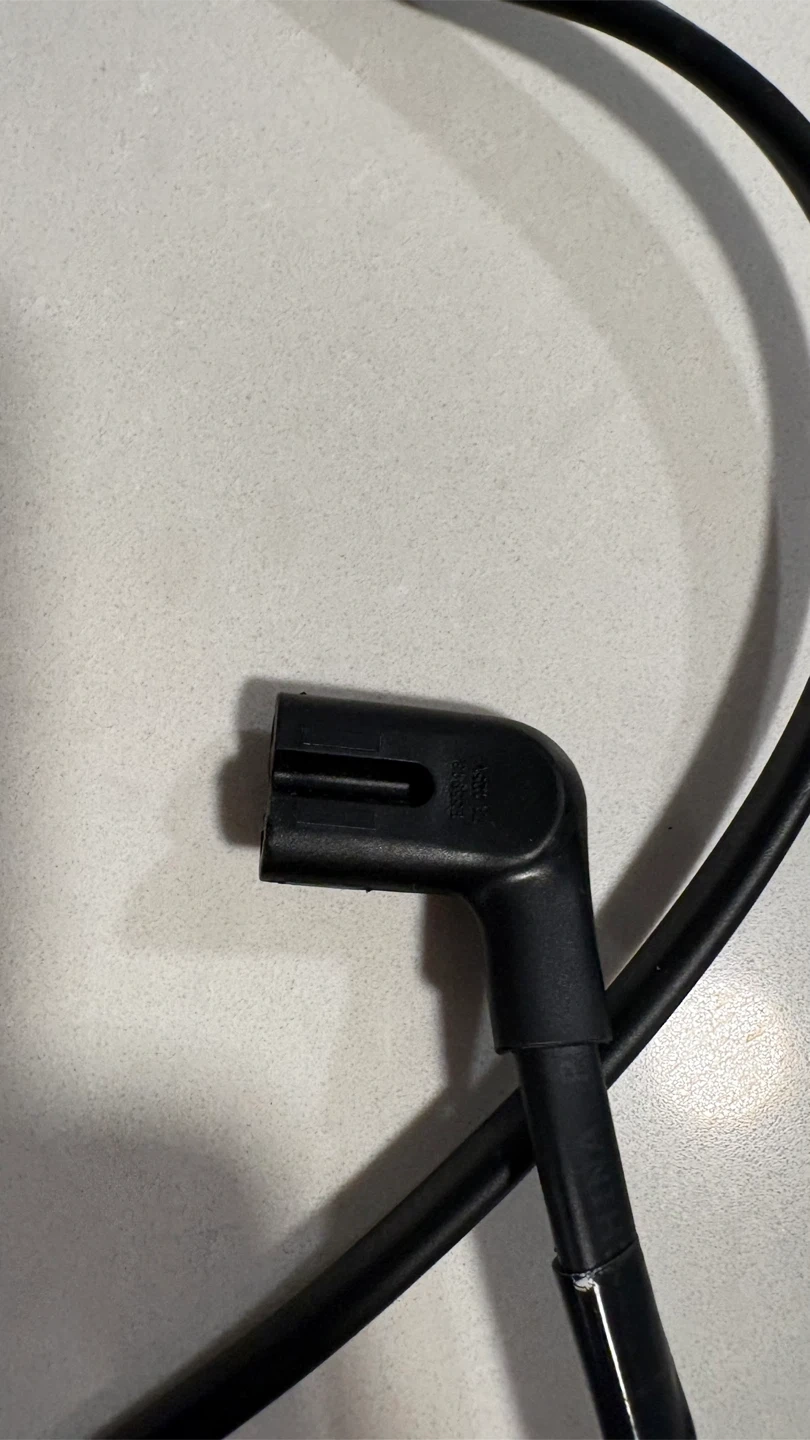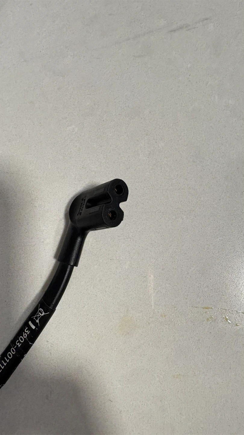 This is a black power cord cable. It has a standard North American plug on one end and a two-pin connector on the other. It's about 6 feet long.