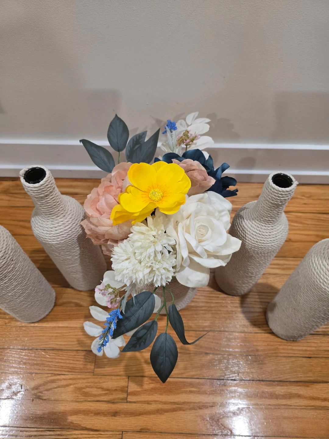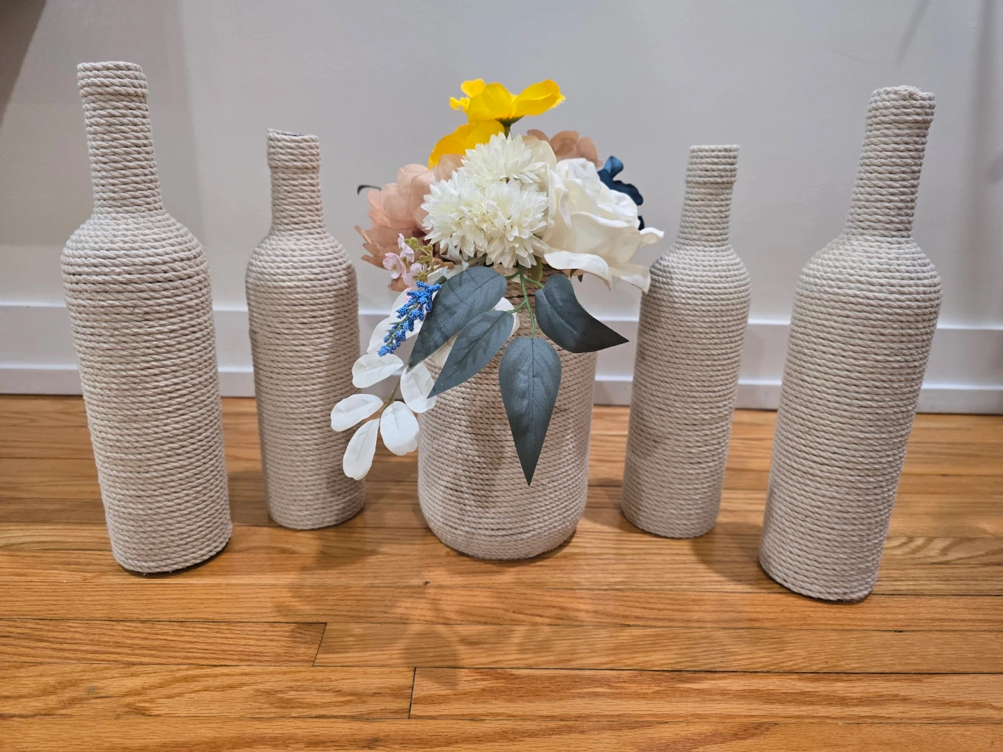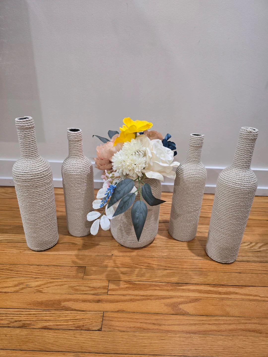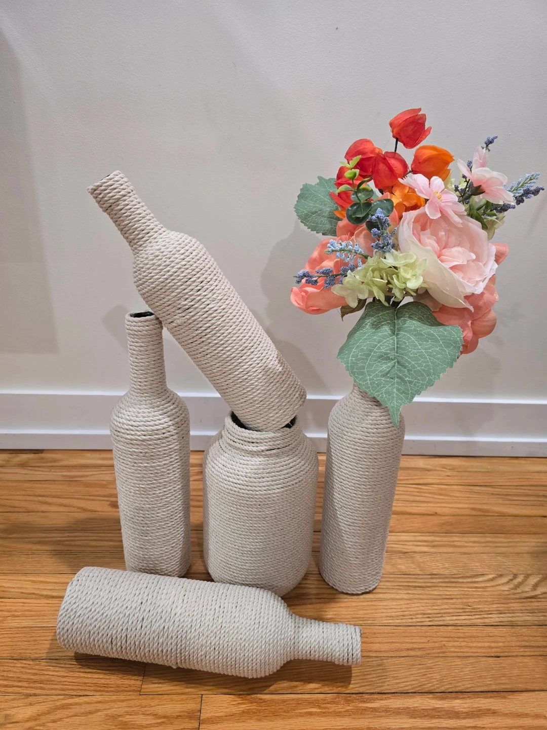 Boho vases, cotton rope wrap bottle vases.