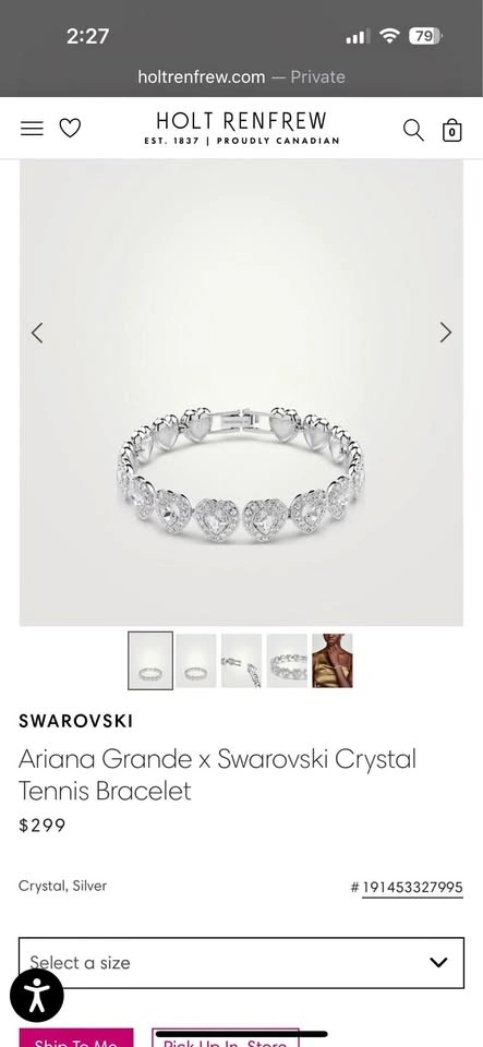 Brand new, never worn. Paid $343 (with tax), asking $300. Includes original Swarovski packaging. Elegant crystal tennis bracelet from the Ariana Grande x Swarovski collaboration — perfect for everyday luxury or special occasions. Amazing shine and quality, makes a great gift. Meet-up in Scarborough. Cash payment only.