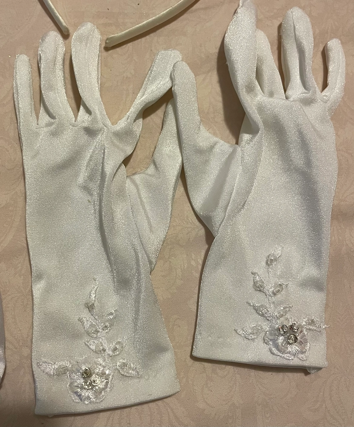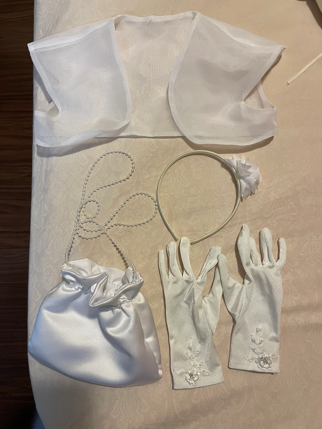 Flower girl bundle set $10- shoulder covering, flower headband, pearl purse and white gloves. Pickup at King street East and Sherbourne
