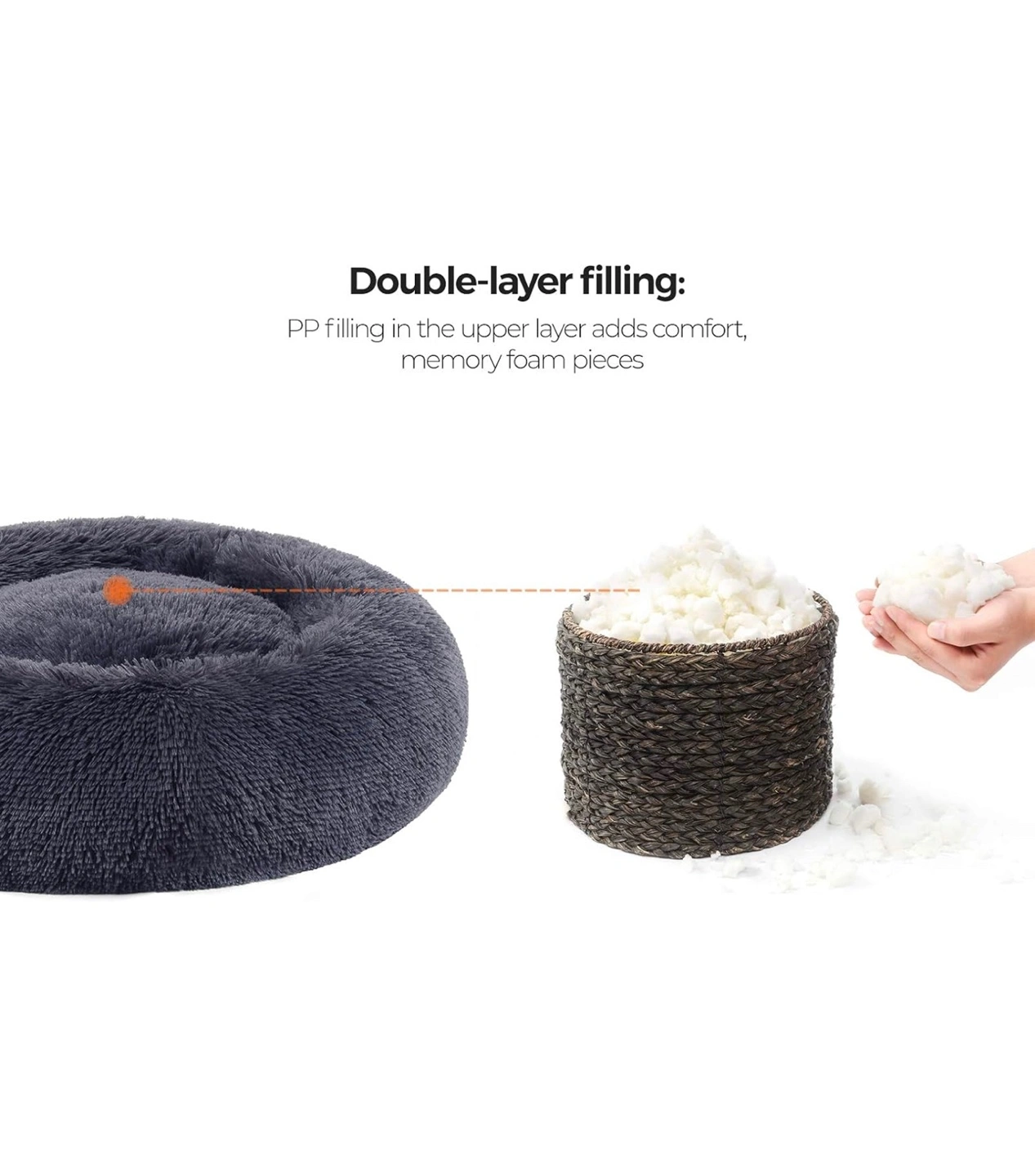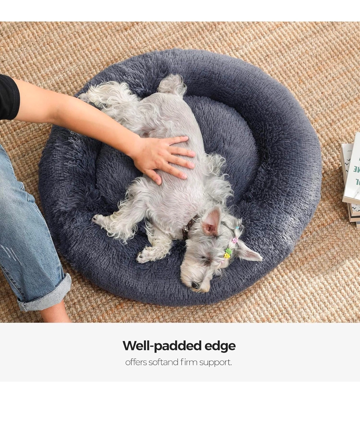 213Grey dog bed with removable and washable cover. Well-padded edge offers soft and firm support. 39*28*13 size brand new