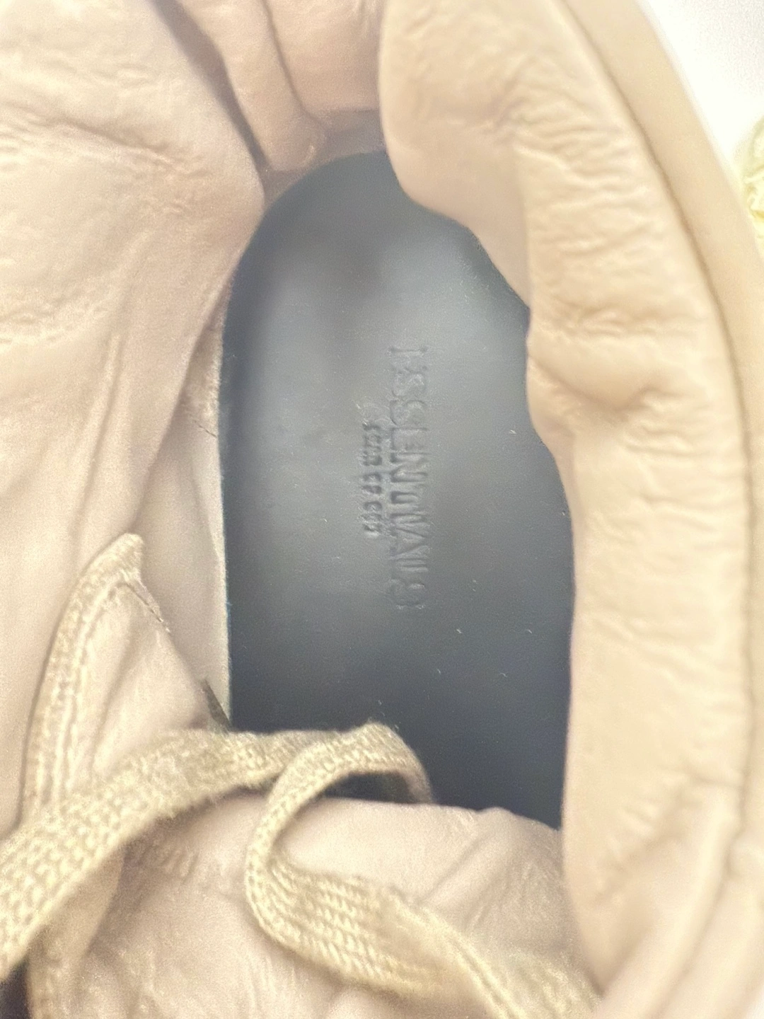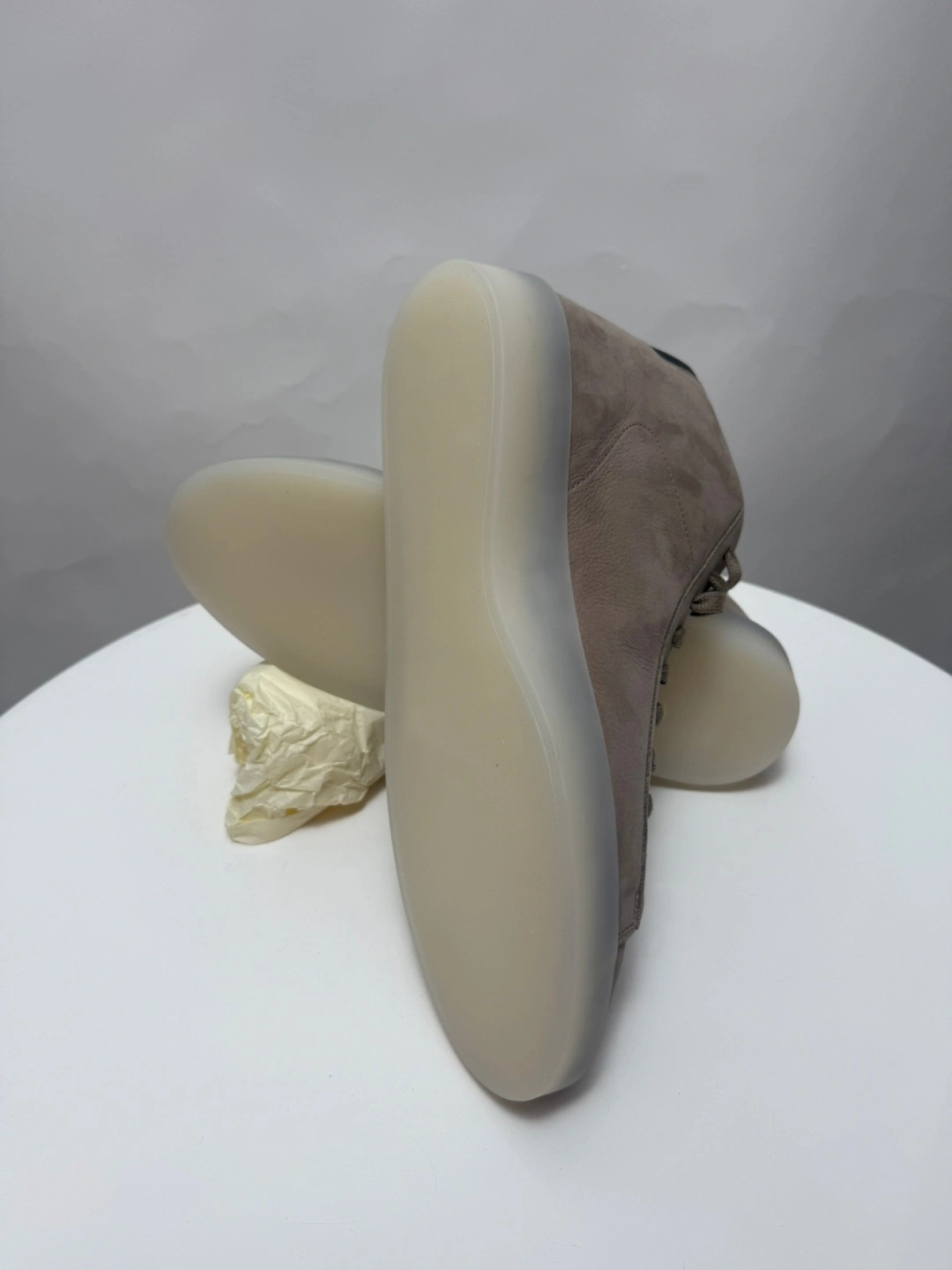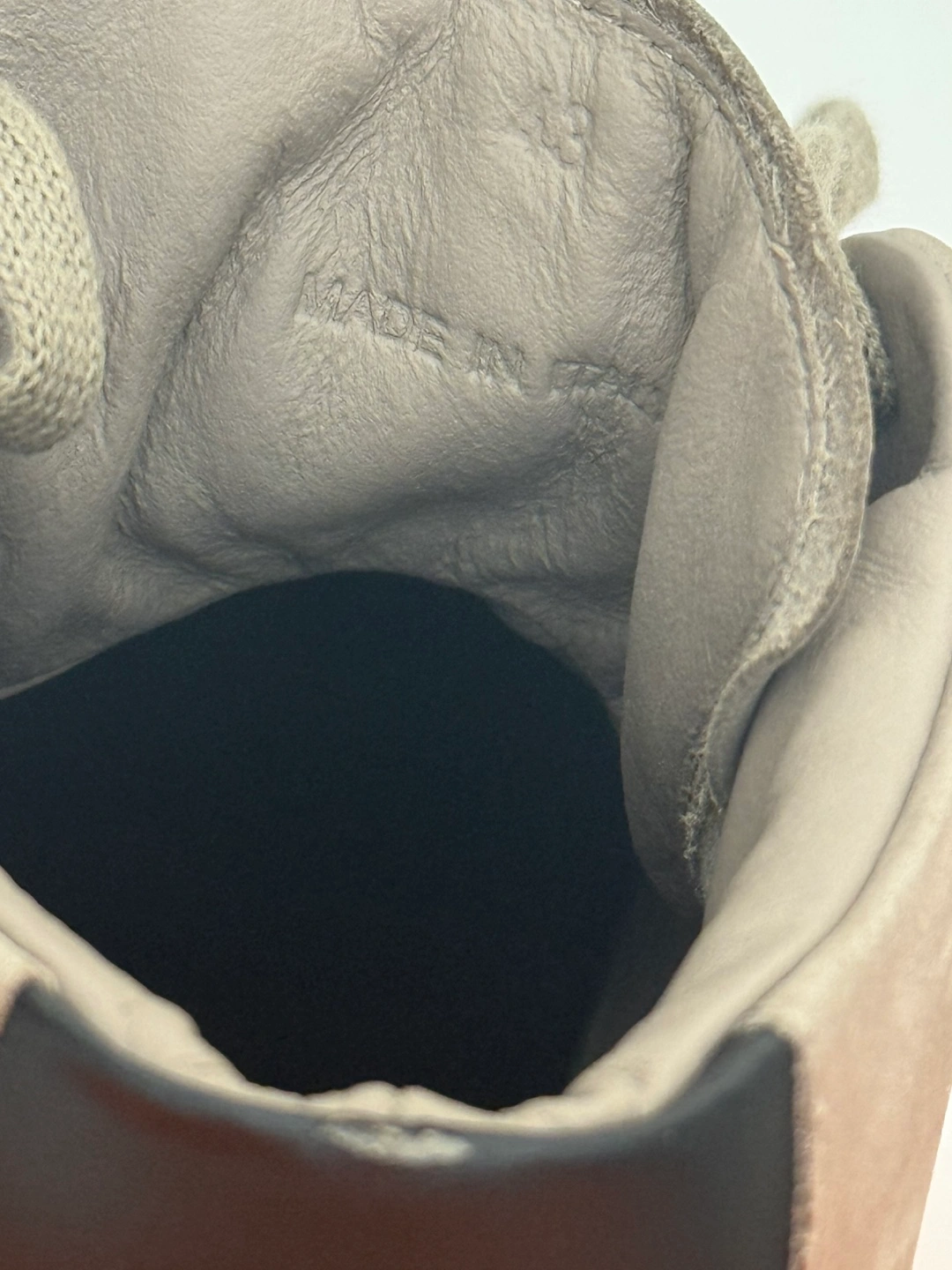 High-top nubuck sneakers in taupe. Logo embossed at outer side. - Lace-up closure - Padded collar - Pull-loop at buffed leather heel tab