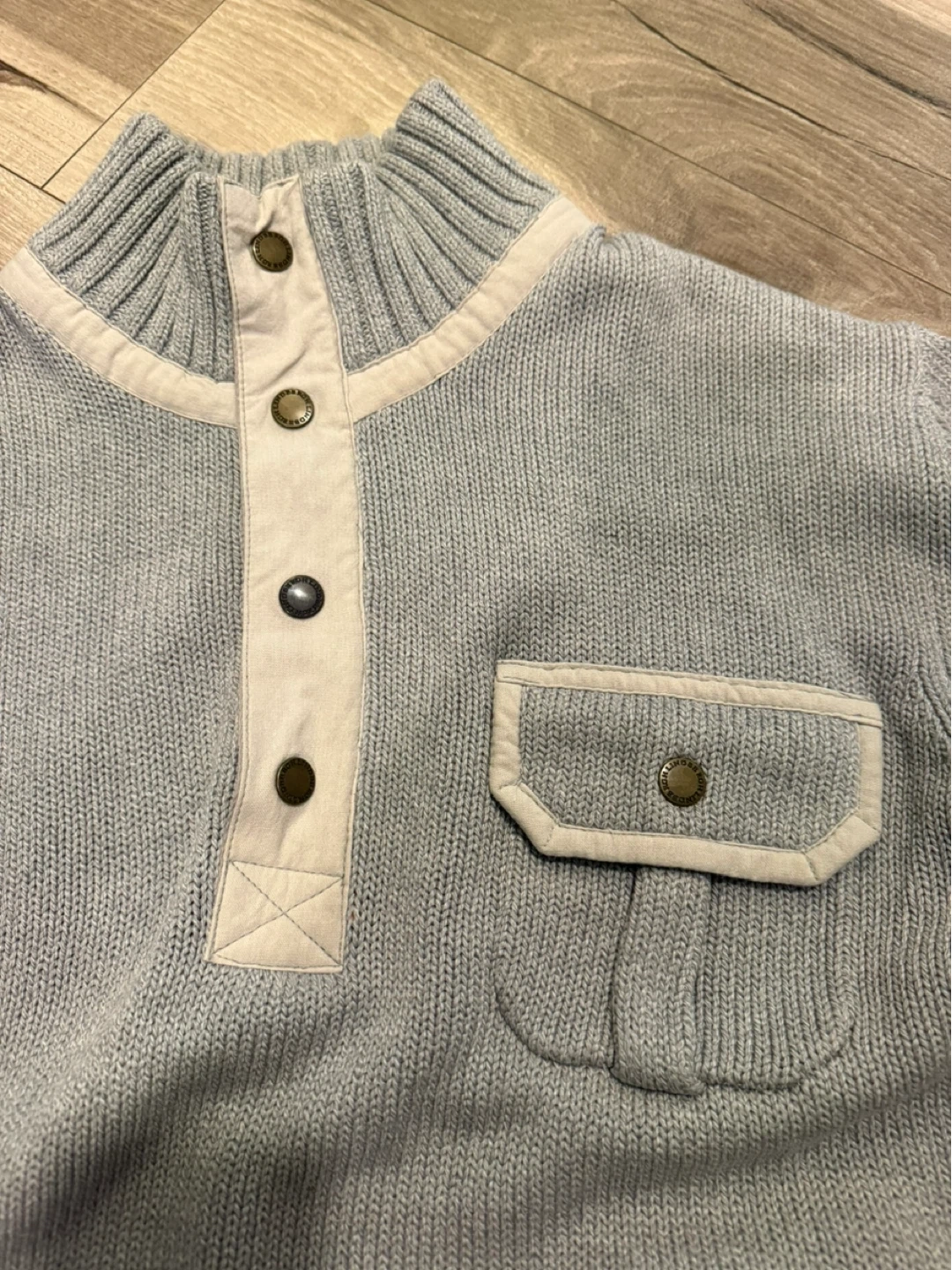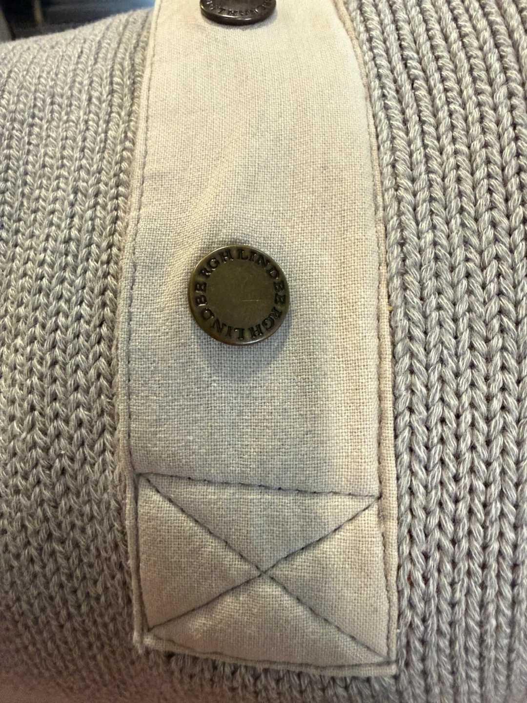 This Lindbergh quality sweater is a great addition to any wardrobe. It's made of a thick knit material and features a quarter-zip neckline with snap button closure. There's a chest pocket with button closure and elbow patches for added detail. Perfect for cooler weather!