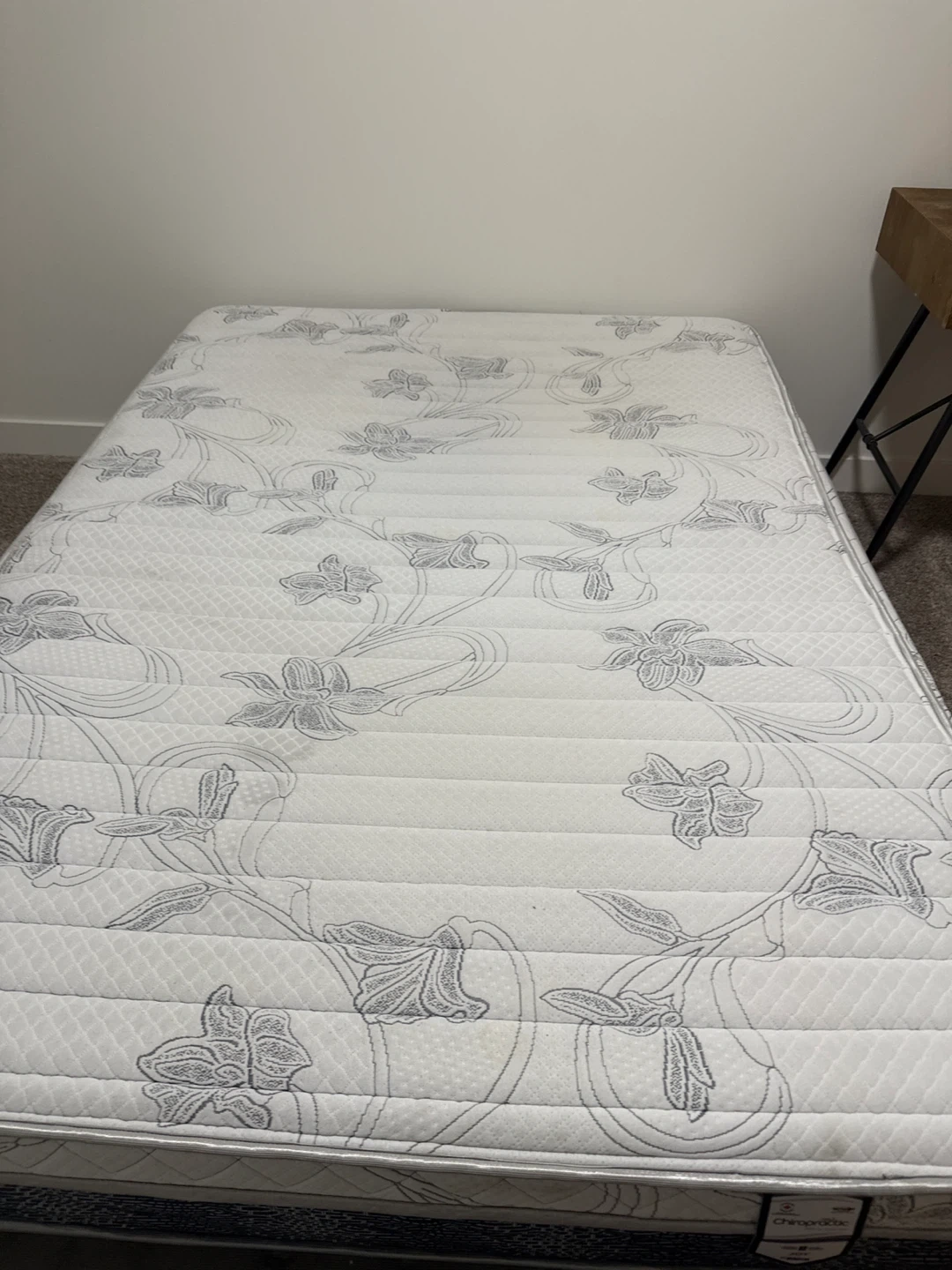 This Sealy Chiropractic "Joy" mattress is designed for comfort and support. It features a floral pattern on the top surface. The mattress measures 75 inches long and 38 inches wide, a standard single size.