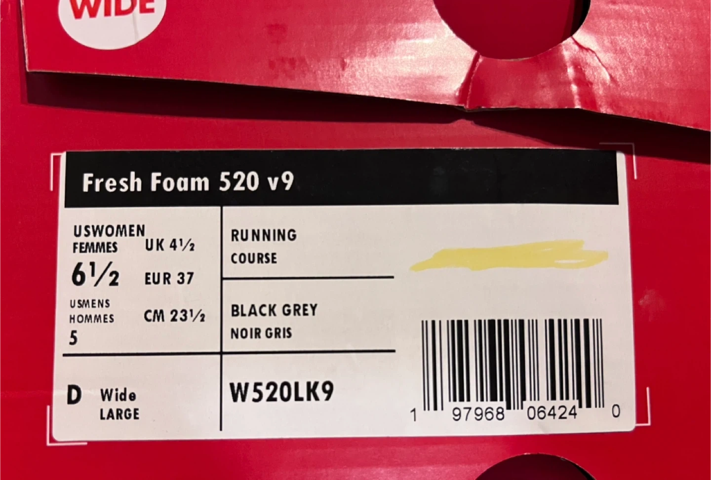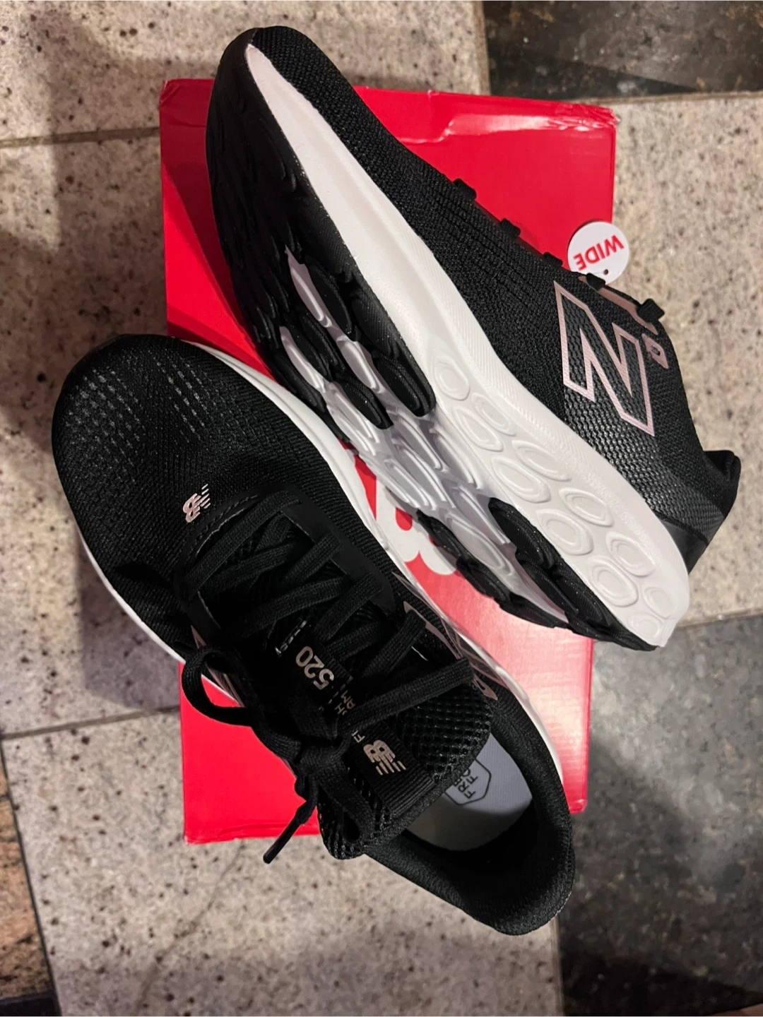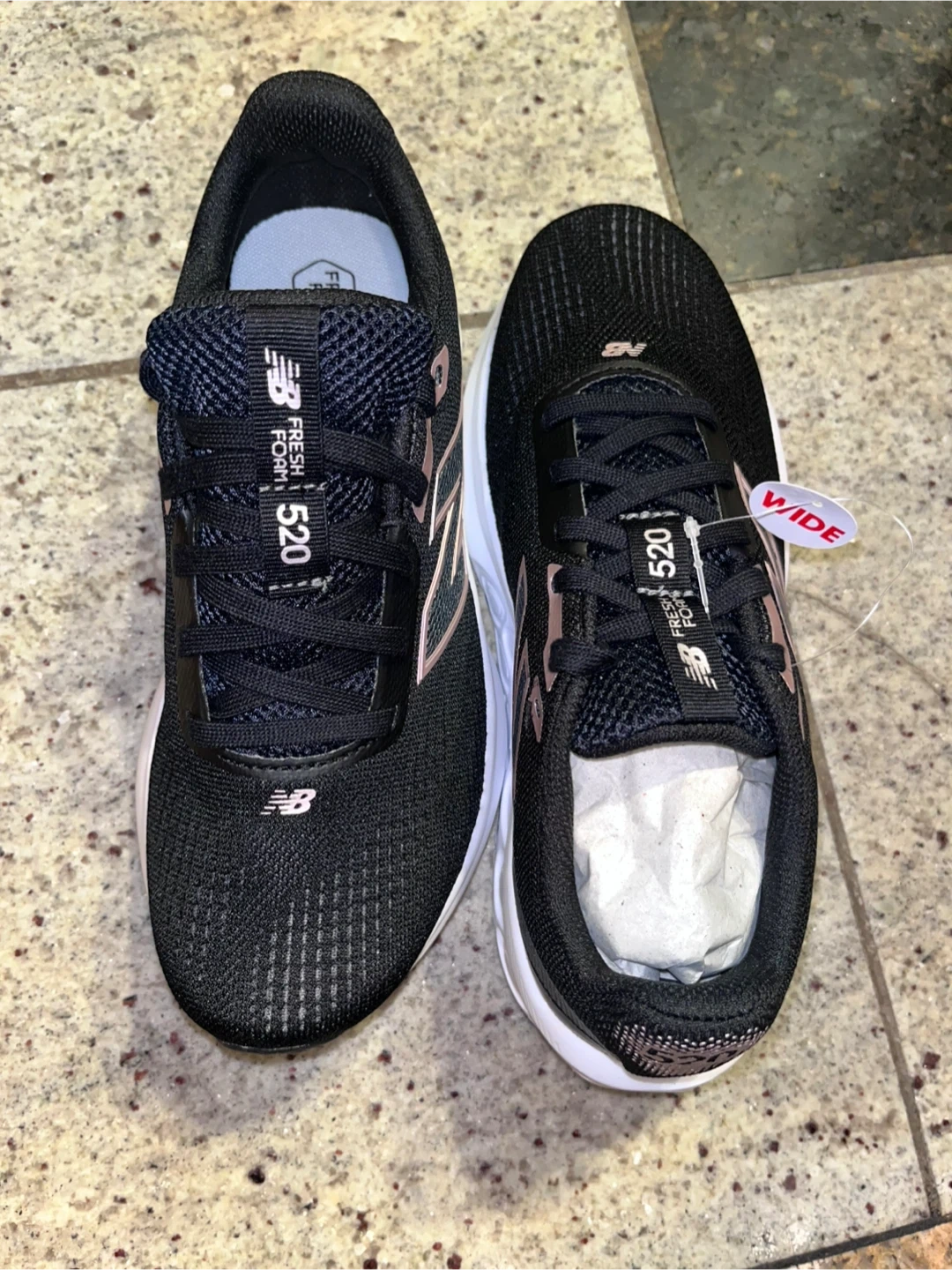 I'm selling a pair of brand new New Balance Fresh Foam 520 v9 Wide sneakers in black grey. They come in the original box. Women’s size 6.5 wide.