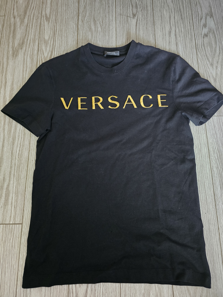 Selling an Authentic Versace t-shirt in black. The brand name is embroidered in gold on the front. It's in great condition! xs mens