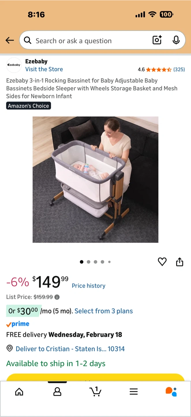 Ezebaby Rocking Bassinet Bedside Sleeper