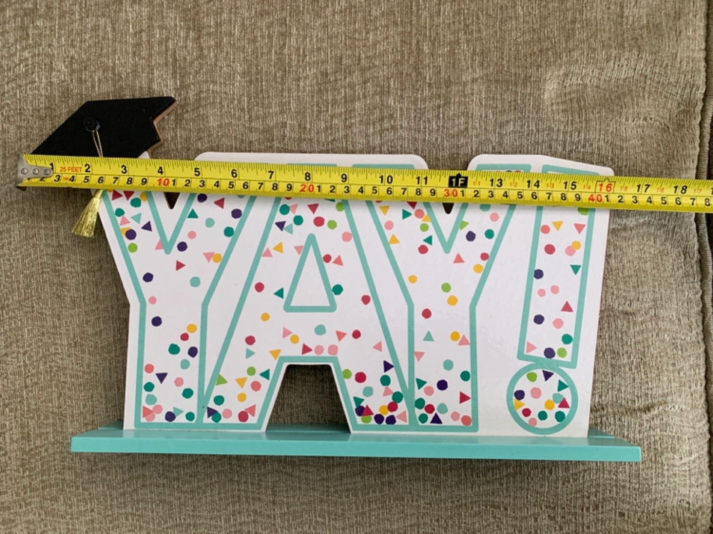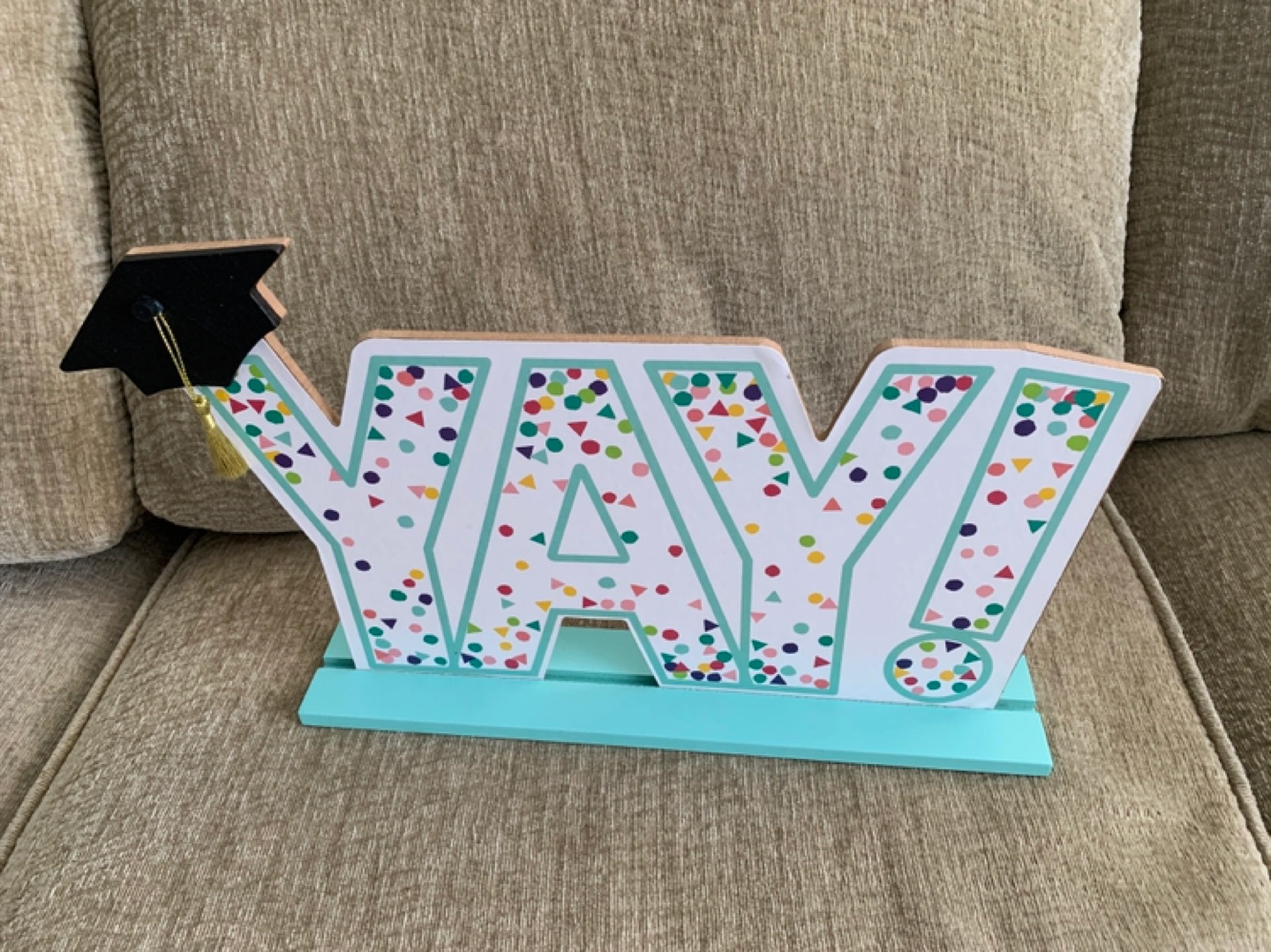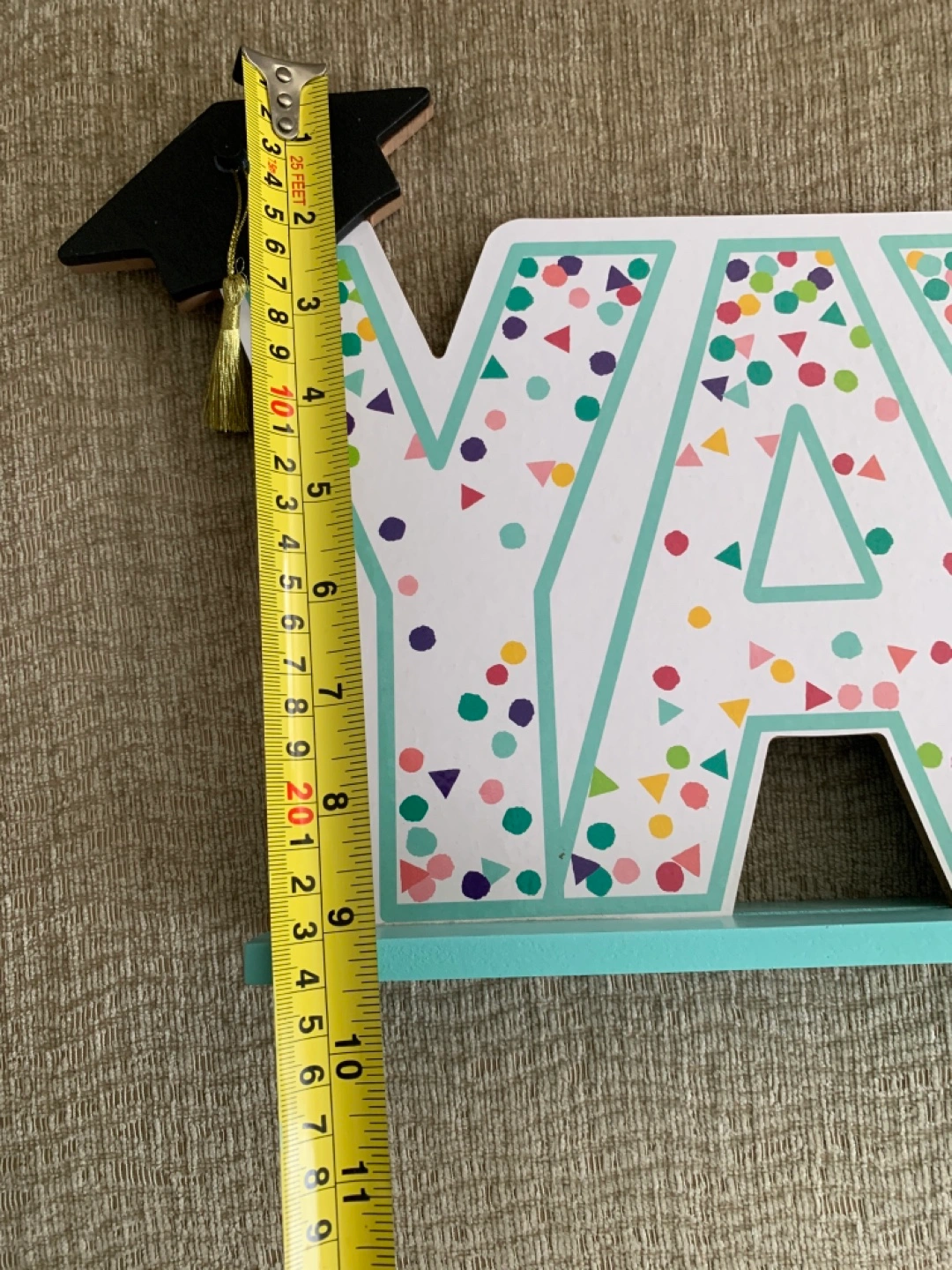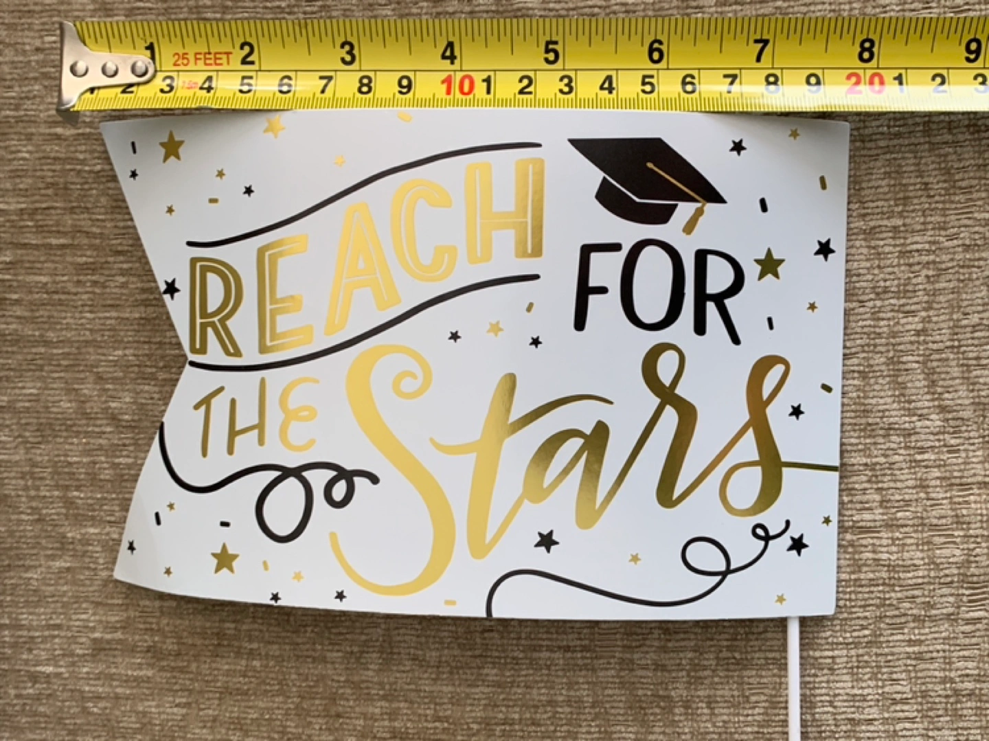 A graduation-themed set. Contains several pennant flags and a wooden cutout decoration. Would be perfect to celebrate a milestone.