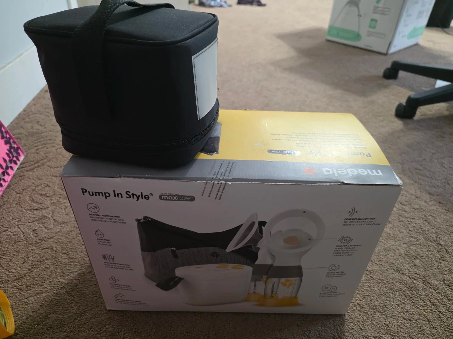 This is a Medela Pump In Style MaxFlow double electric breast pump. It includes a portable bag and two bottles. The pump is designed for hospital performance and comfortable use.