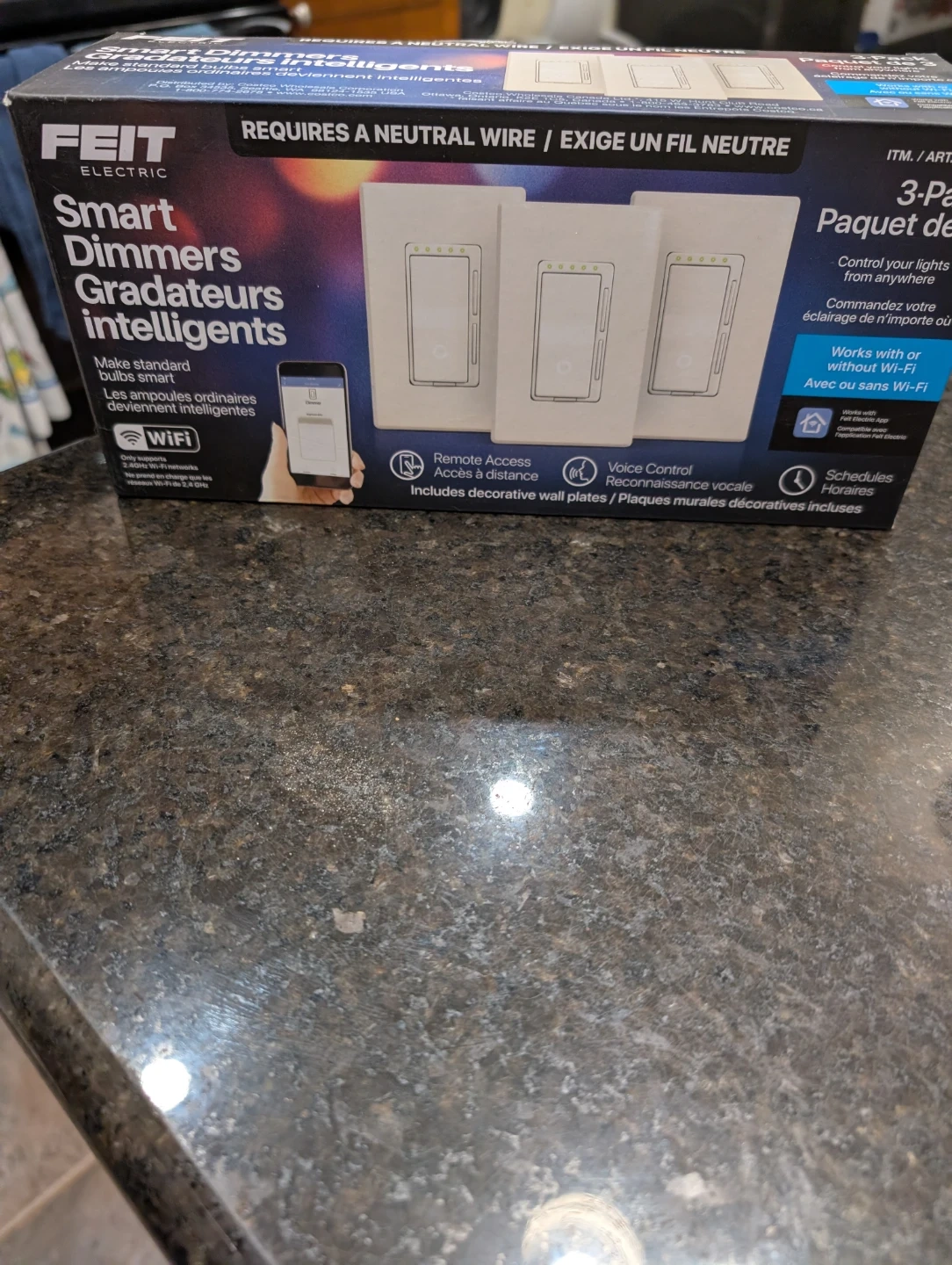 18Selling a 3-pack of Feit Electric smart dimmers! These dimmers allow you to control your lights from anywhere and work with or without Wi-Fi. They also include decorative wall plates.