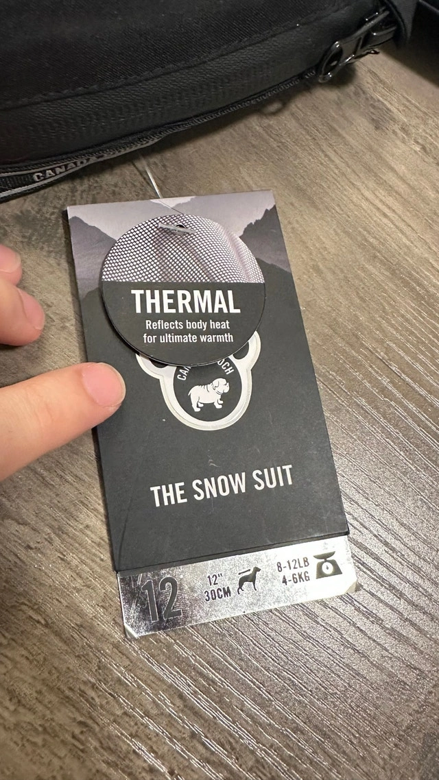 Keep your furry friend warm and stylish this winter with this Canada Pooch Snow Suit, size 12! Designed for ultimate warmth, this suit features a thermal foil liner to reflect body heat and a water-resistant exterior, perfect for those snowy adventures. It also has reflective branded side taping for added visibility and adjustable neck toggles for a snug fit. Features: Innovative foil liner reflects body heat, Water-resistant exterior with full body coverage, Opening for leash attachment, Easy pull-on design, Reflective branded side taping for added visibility, Adjustable neck toggles. This dog snow suit is in totally new condition and comes with all original tags. If you see this ad, it's still available!