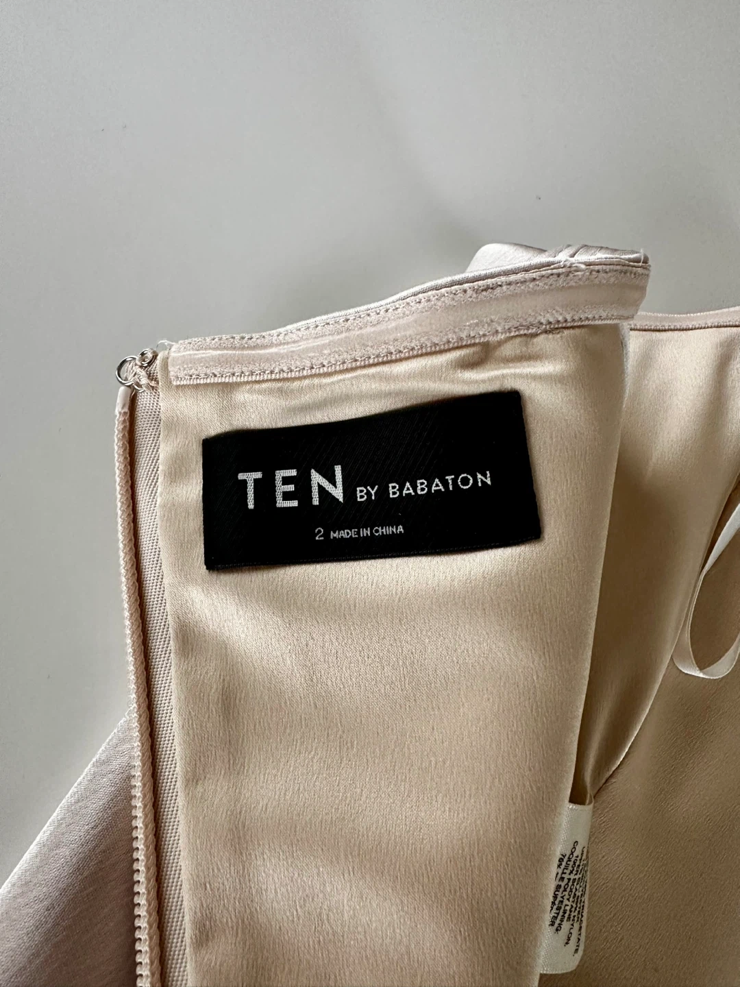 - Invisible back zipper with hook-and-eye closure