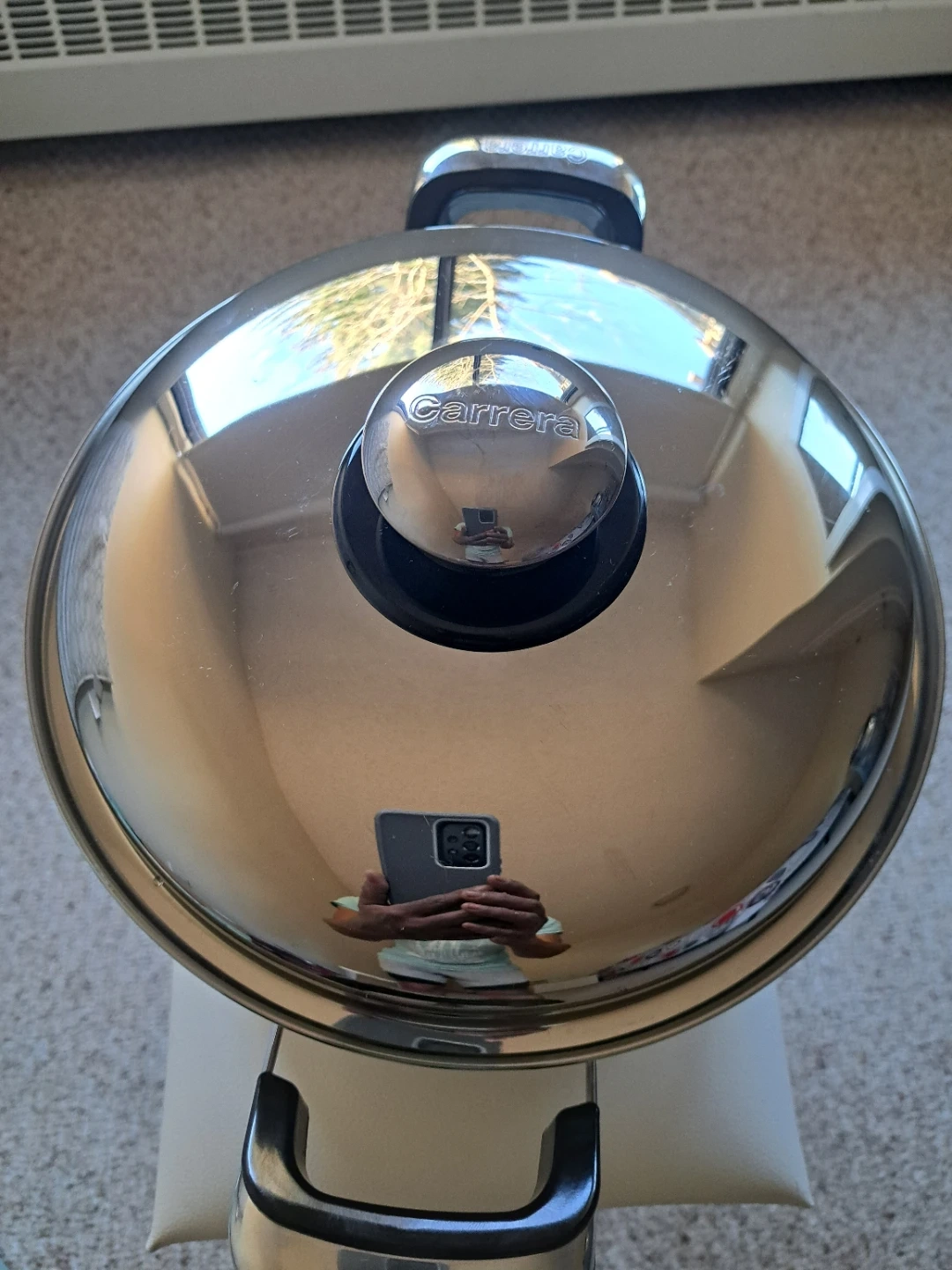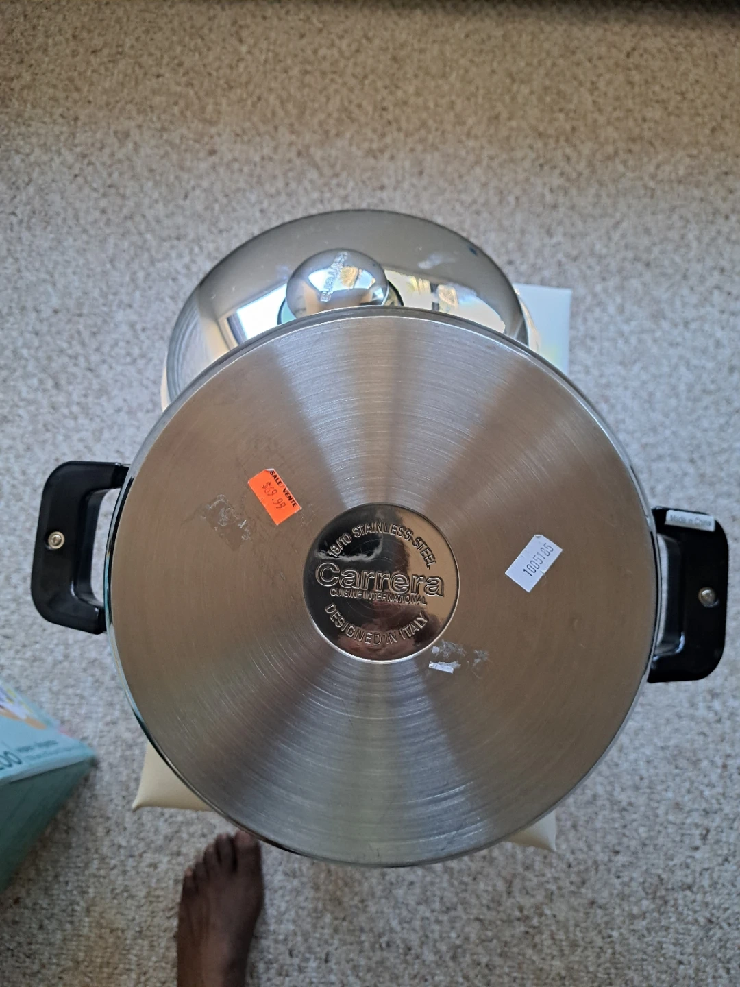 This Carrera pot is made from 18/10 stainless steel. It's designed in Italy. Great for everyday cooking needs!
